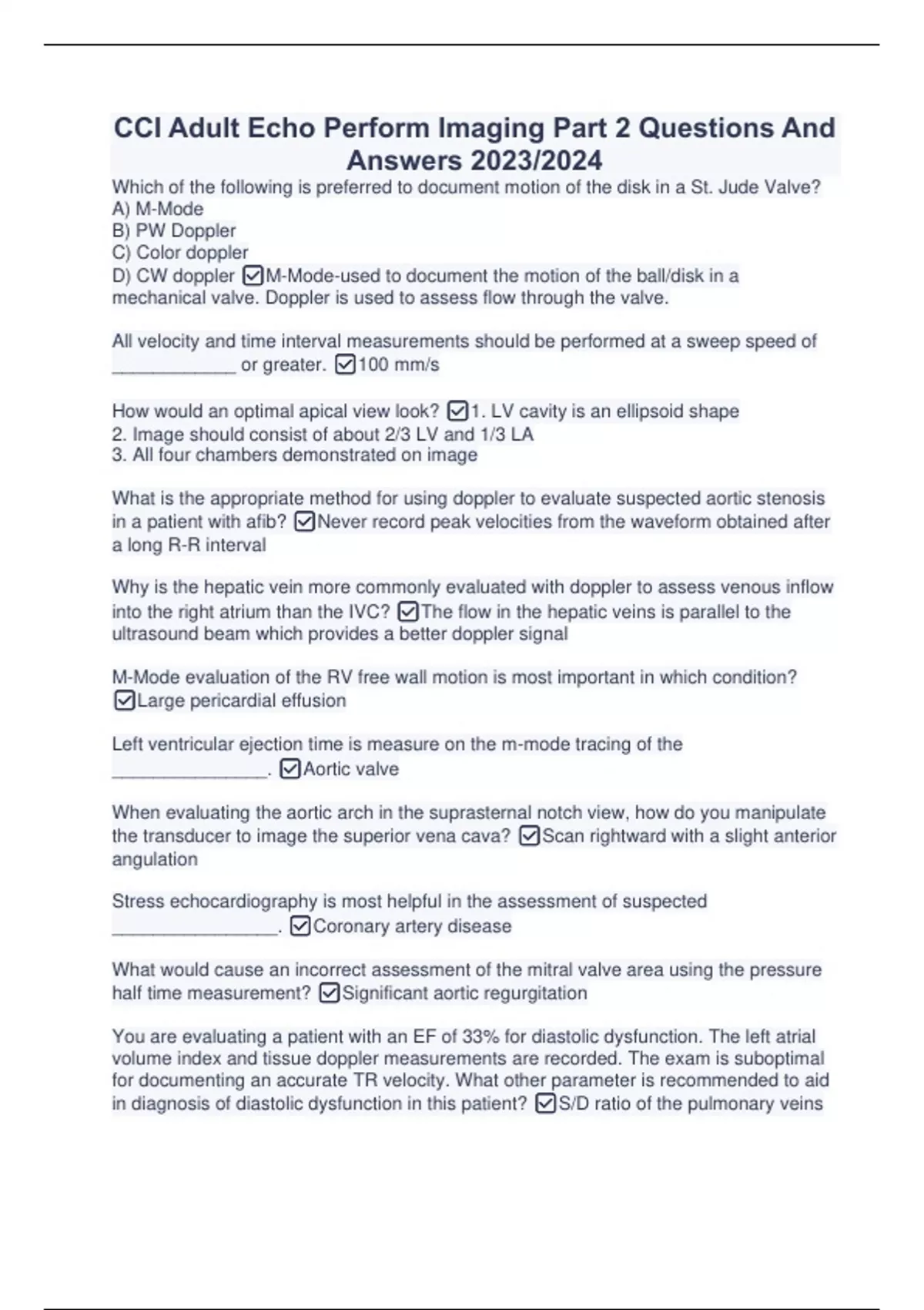CCI Adult Echo Perform Imaging Part 2 Questions And Answers 2023/2024 CCI Adult Echo Perform Imaging Part 2 Questions And Answers 2023/2024