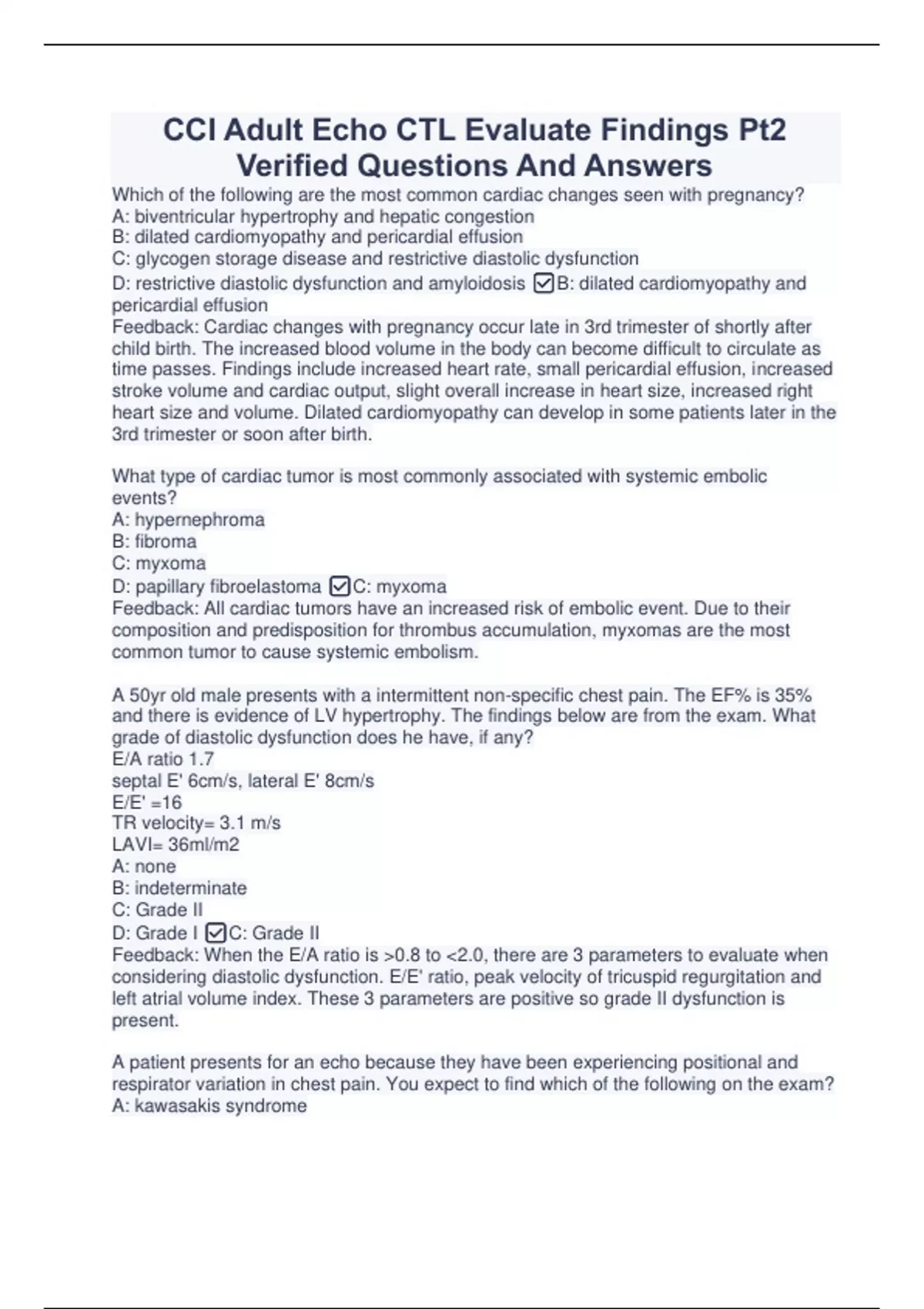 CCI Adult Echo CTL Evaluate Findings Pt2 Verified Questions And Answers CCI Adult Echo CTL Evaluate Findings Pt2 Verified Questions And Answers