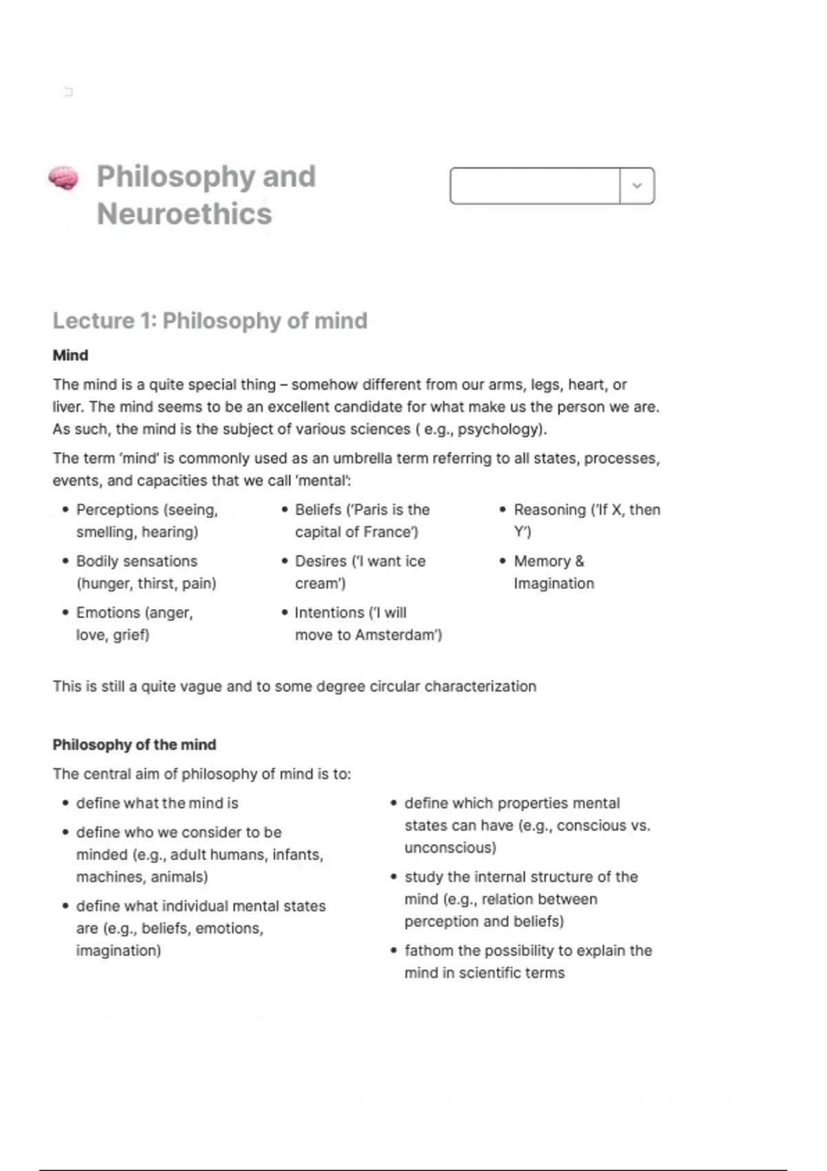Lecture 1: Philosophy of mind
