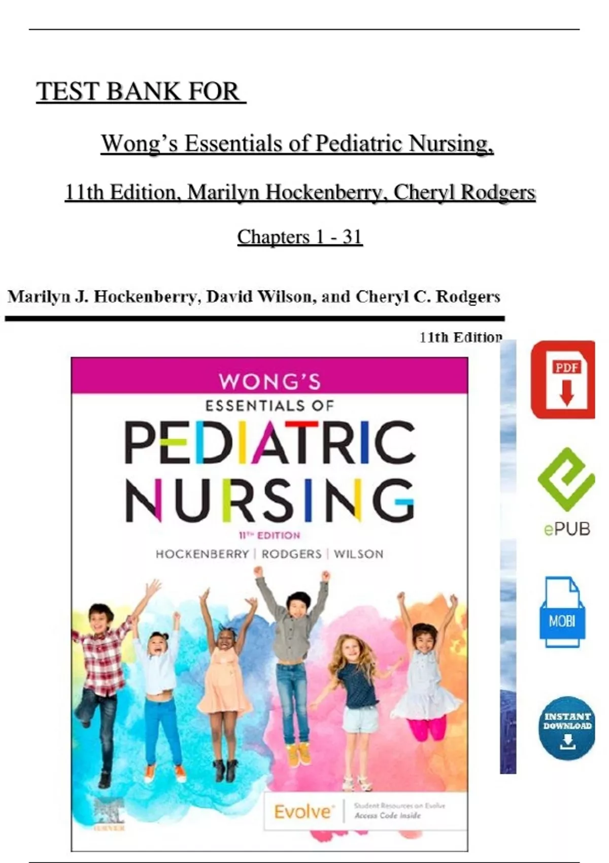 TEST BANK For Wong’s Essentials of Pediatric Nursing, 11th Edition by Marilyn Hockenberry, Cheryl Rodgers, All Chapters 1 - 31, Complete Newest Version pdf Wong’s Essentials of Pediatric Nursing, 11th Edition by Marilyn Hockenberry, Cheryl Rodgers pdf TEST BANK For Wong’s Essentials of Pediatric Nursing, 11th Edition pdf Wong’s Essentials of Pediatric Nursing, 11th Edition pdf