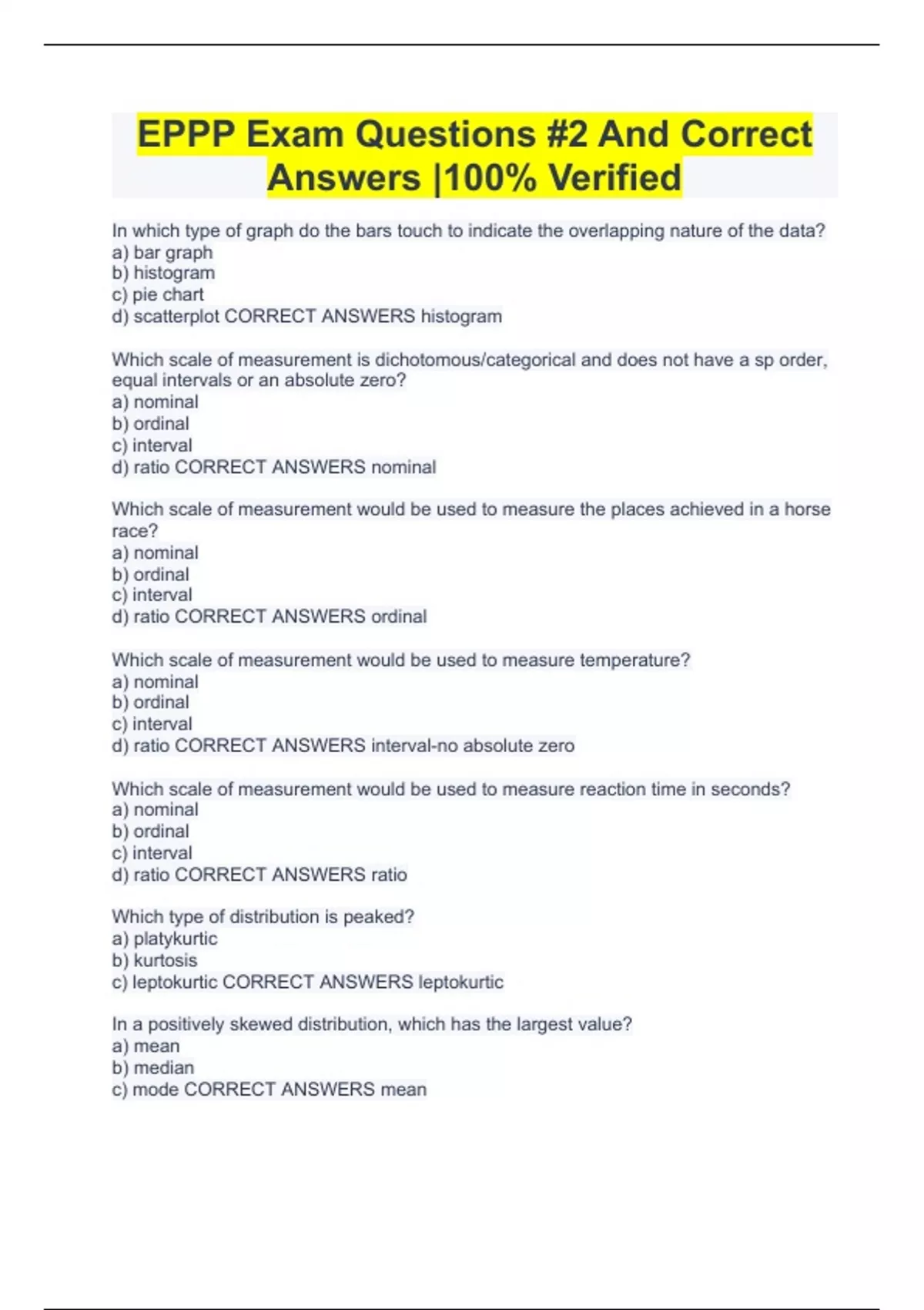 Exam of 7 pages for the course EPPP at EPPP (EPPP Exam Questions)