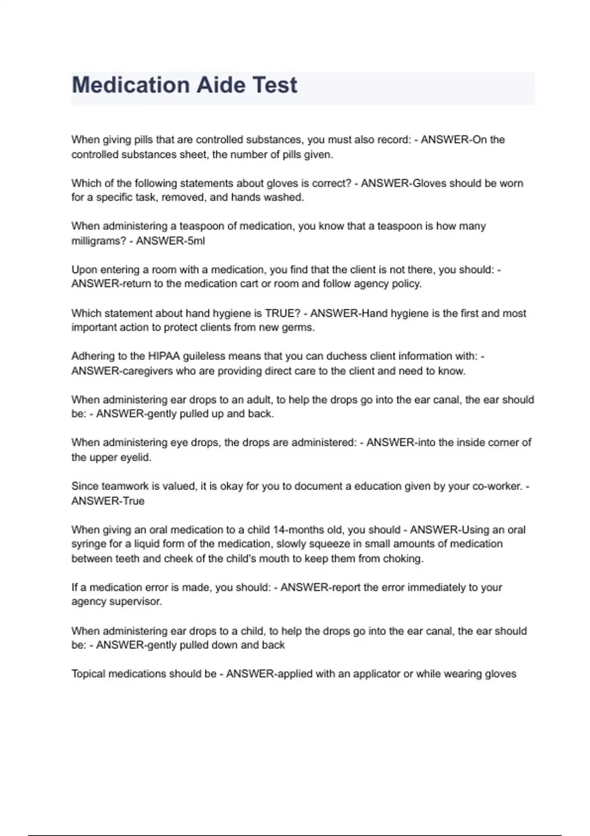 Medication Aide Test