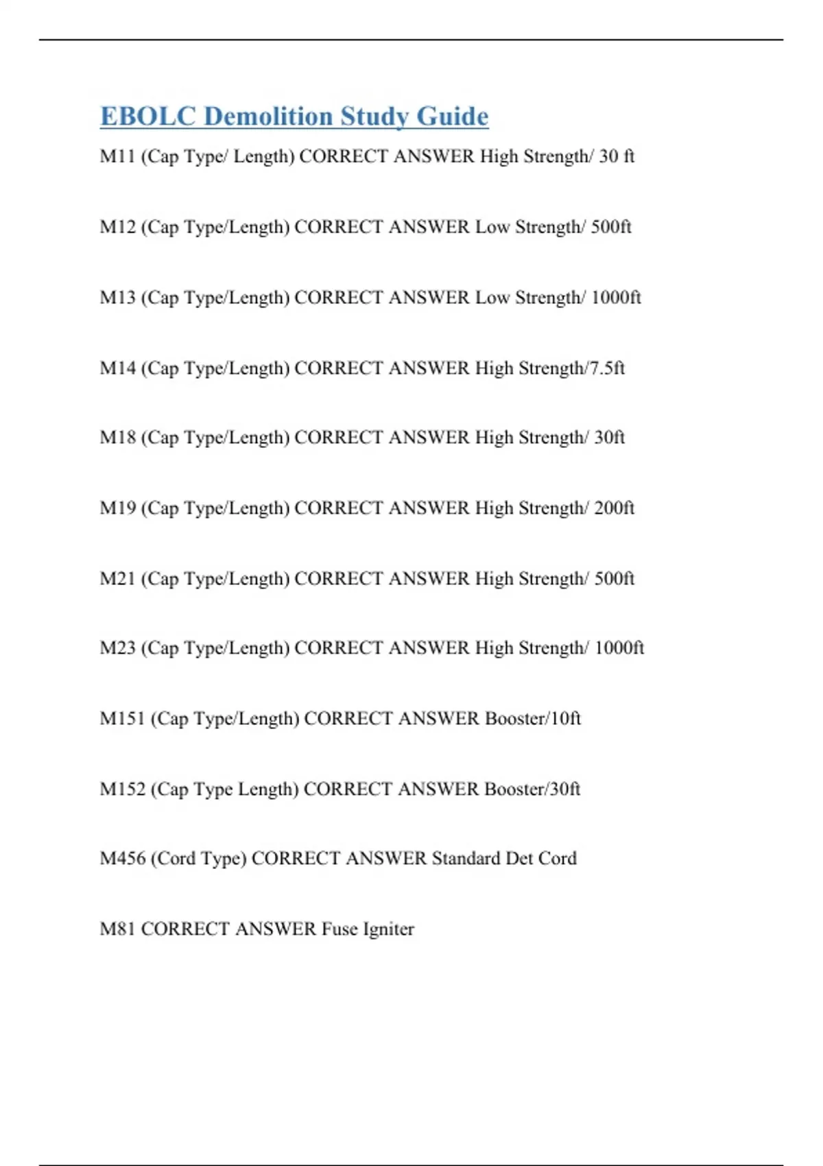 EBOLC Demolition Study Guide
