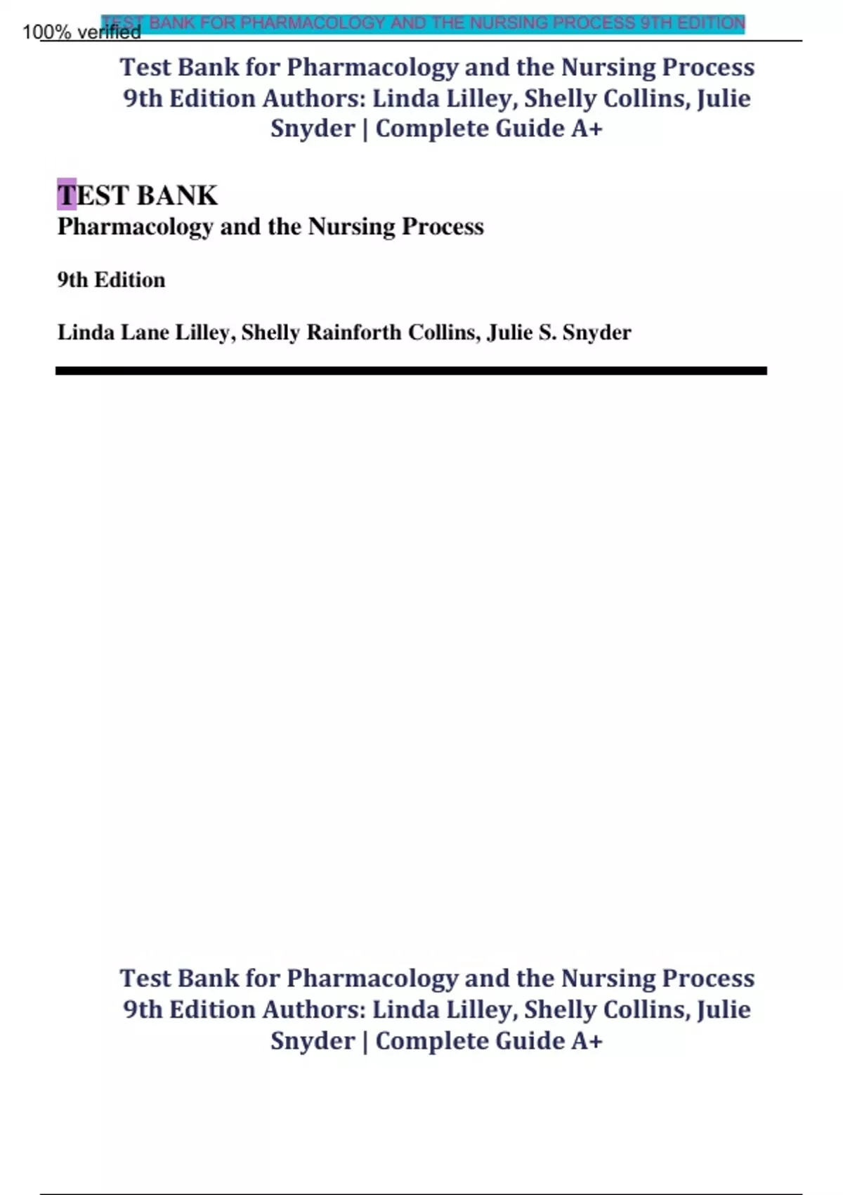 Test Bank for Pharmacology and the Nursing Process 9th Edition Authors: Linda Lilley, Shelly Collins, Julie Snyder | Complete Guide A+