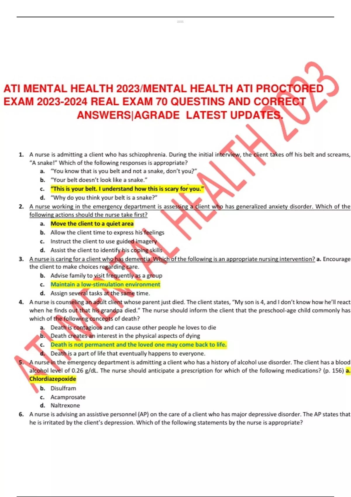 ATI MENTAL HEALTH 2023/MENTAL HEALTH ATI PROCTORED