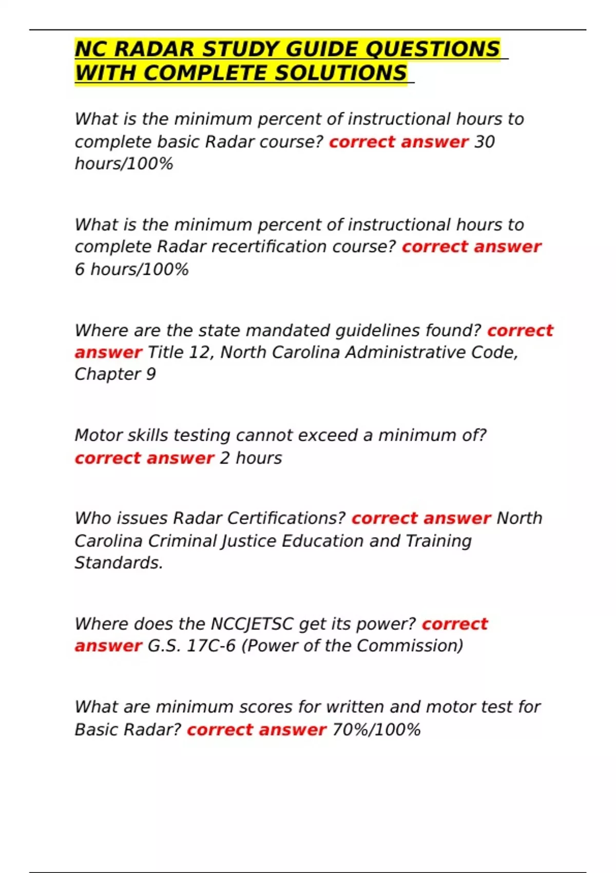 NC RADAR STUDY GUIDE QUESTIONS WITH COMPLETE SOLUTIONS