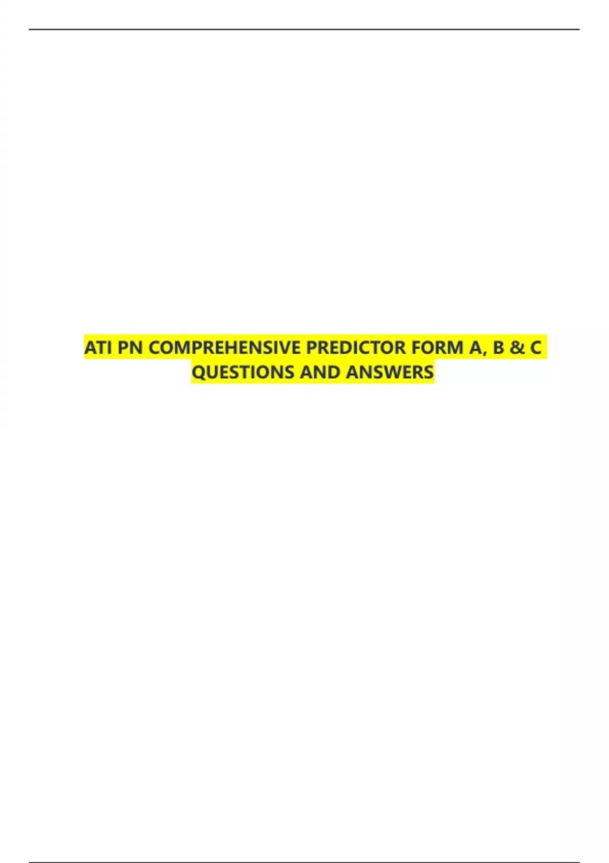 ATI PN COMPREHENSIVE PREDICTOR FORM A, B & C QUESTIONS AND ANSWERS LATEST 2023 ATI PN COMPREHENSIVE PREDICTOR FORM A, B & C QUESTIONS AND ANSWERS LATEST 2023 ATI PN COMPREHENSIVE PREDICTOR FORM A, B & C QUESTIONS AND ANSWERS LATEST 2023 ATI PN COMPREHENSIVE PREDICTOR FORM A, B & C QUESTIONS AND ANSWERS LATEST 2023