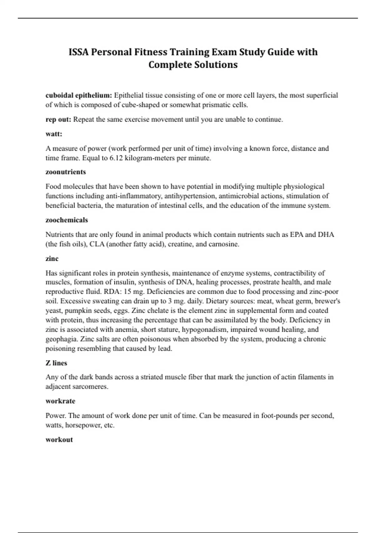 ISSA Personal Fitness Training Exam Study Guide with Complete Solutions