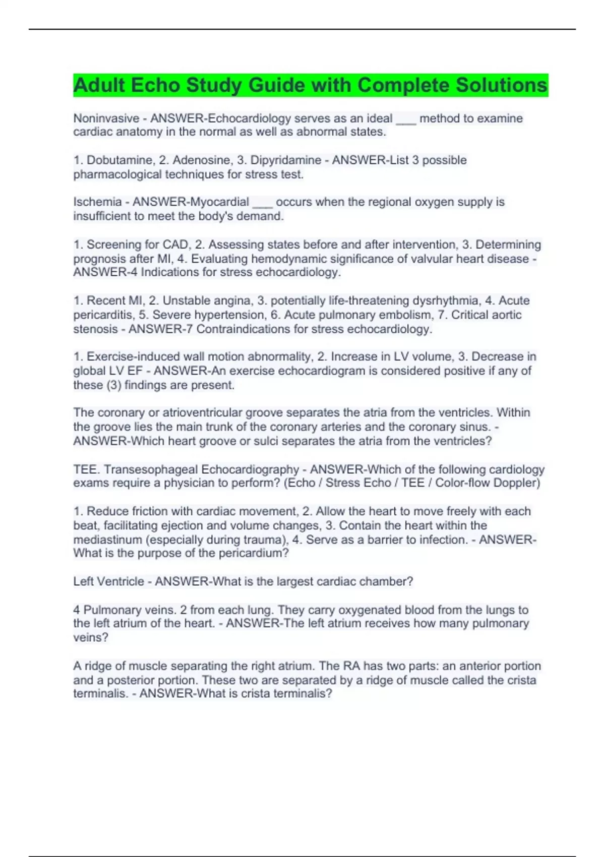 Adult Echo Study Guide with Complete Solutions