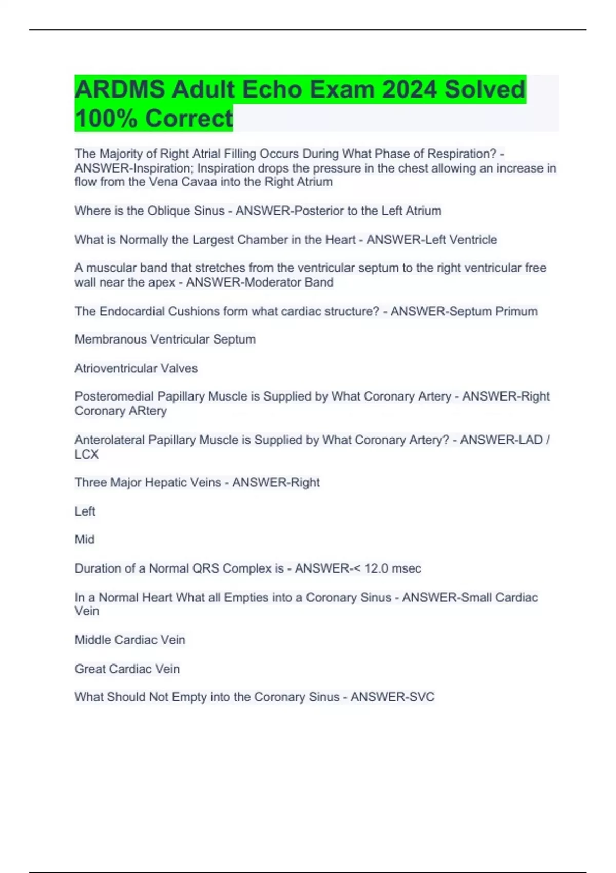 ARDMS Adult Echo Exam 2024 Solved 100% Correct