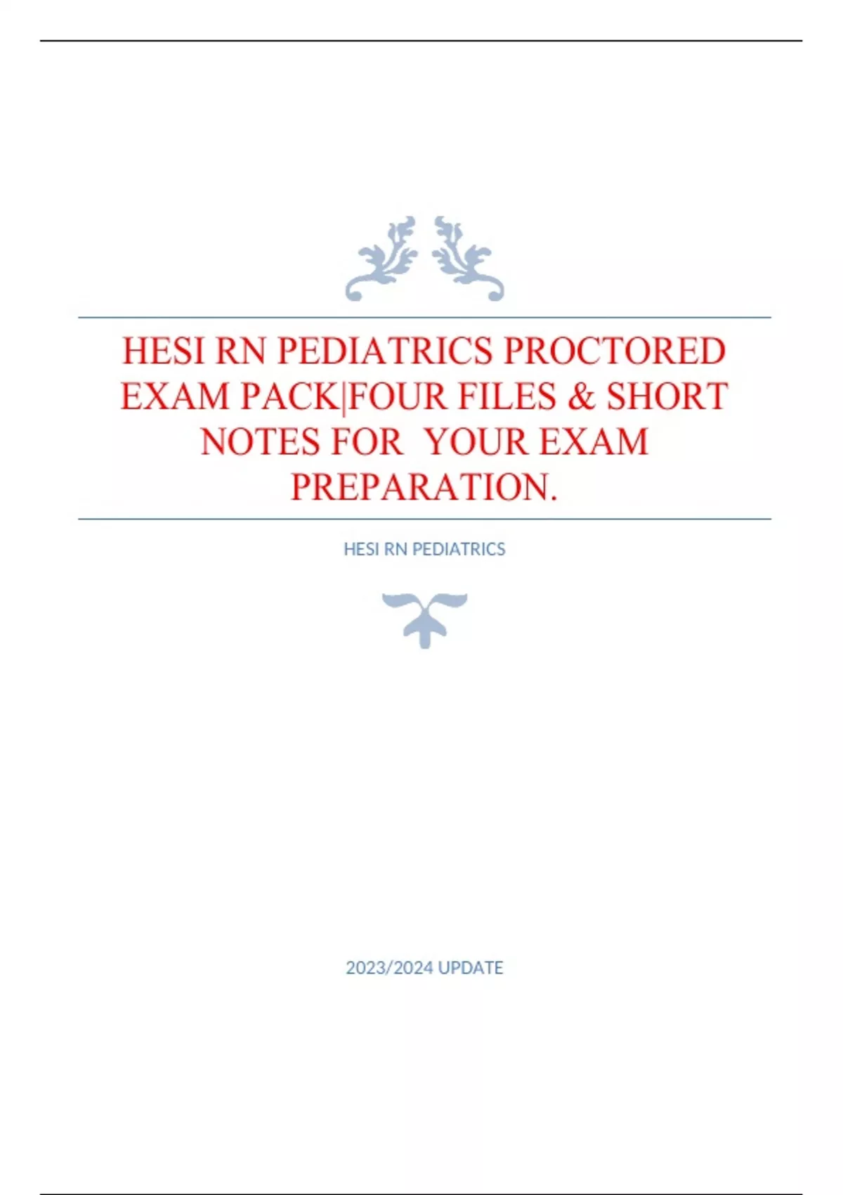 HESI RN PEDIATRICS PROCTORED EXAM PACK|FOUR FILES & SHORT NOTES FOR YOUR EXAM PREPARATION.