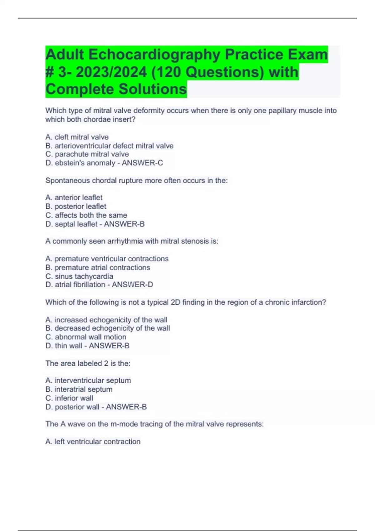 Adult Echocardiography Practice Exam # 3- 2023/2024 (120 Questions) with Complete Solutions