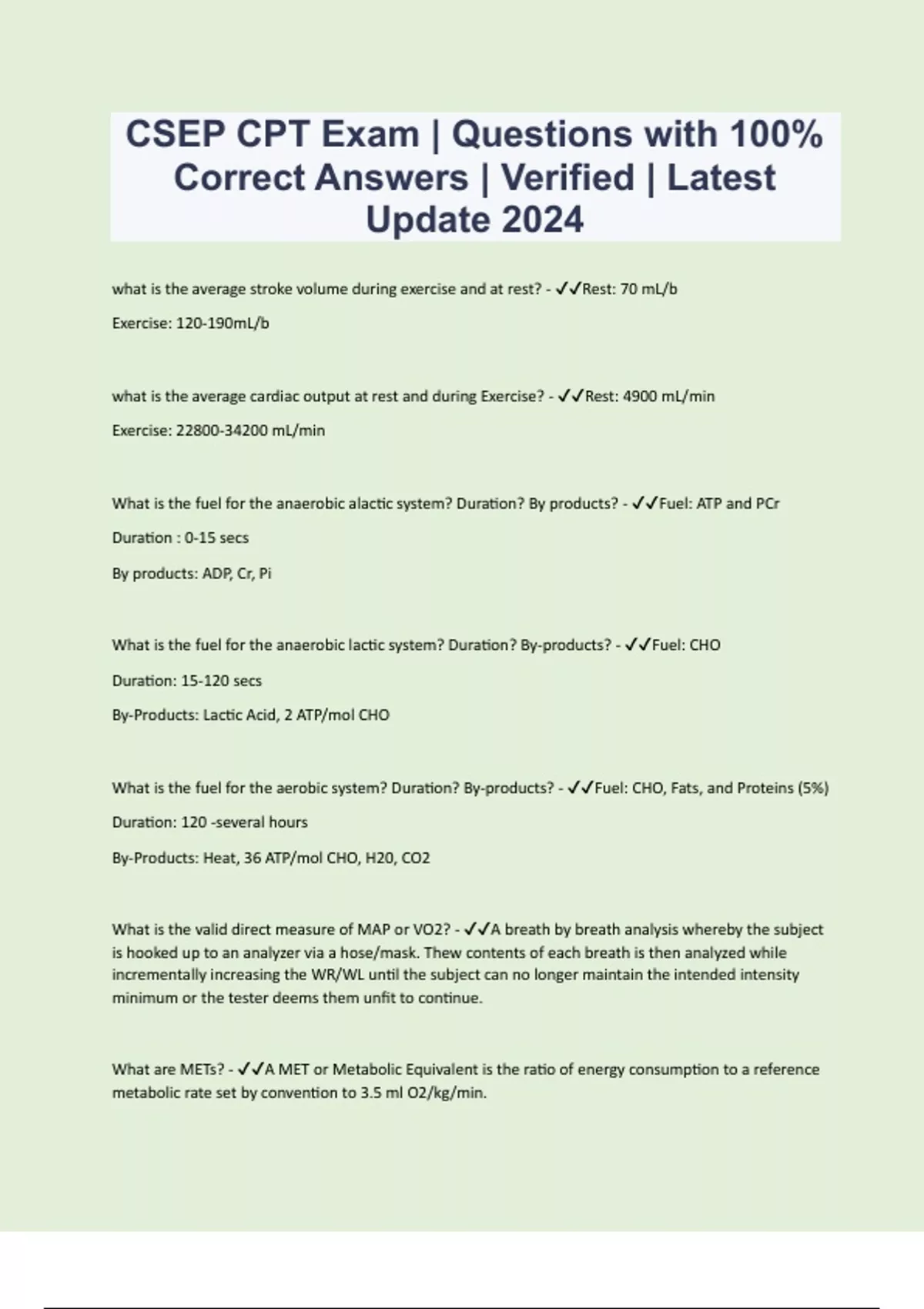 CSEP CPT Exam | Questions with 100% Correct Answers | Verified | Latest Update 2024