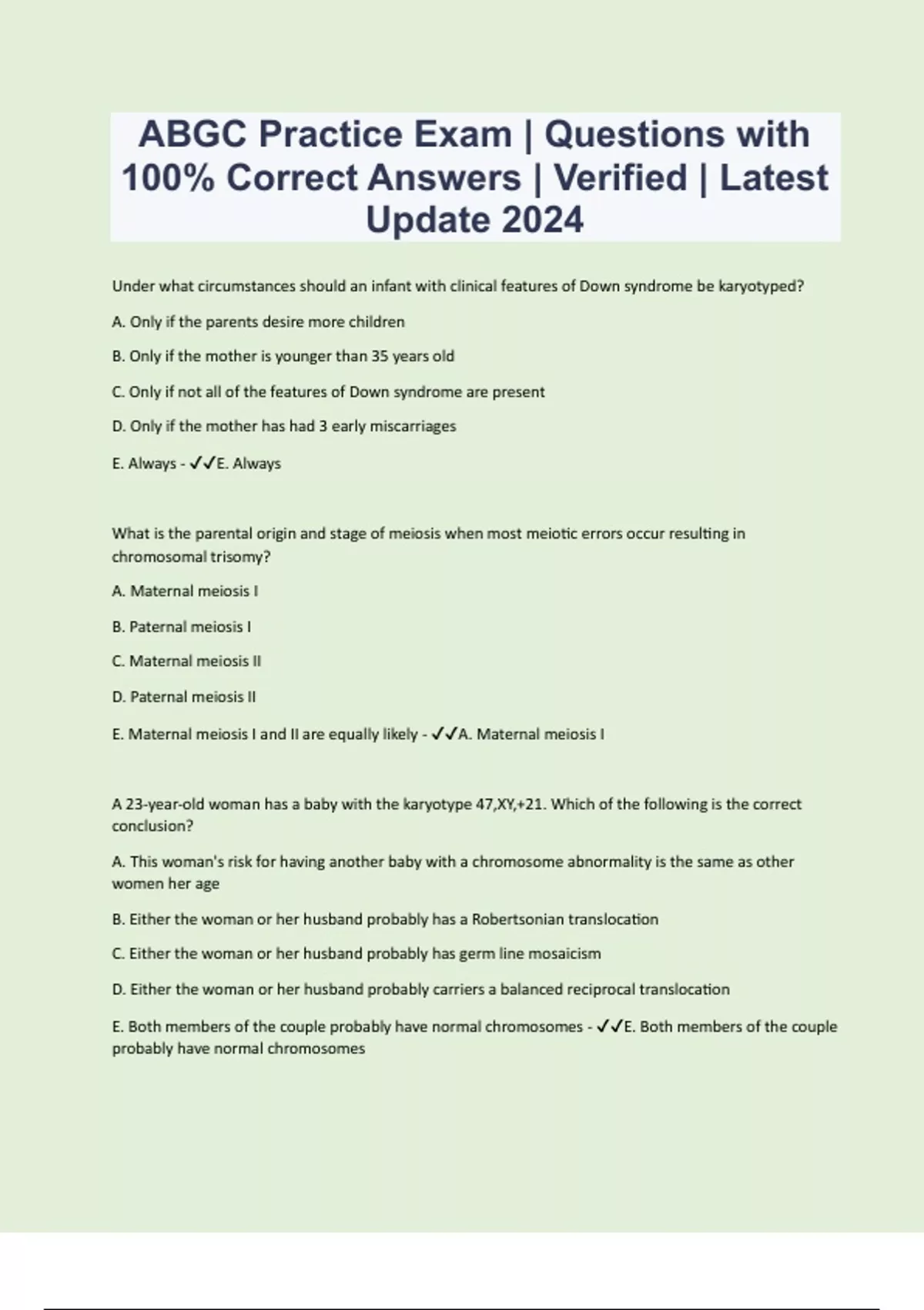 ABGC Practice Exam | Questions with 100% Correct Answers | Verified | Latest Update 2024 | 31 Pages
