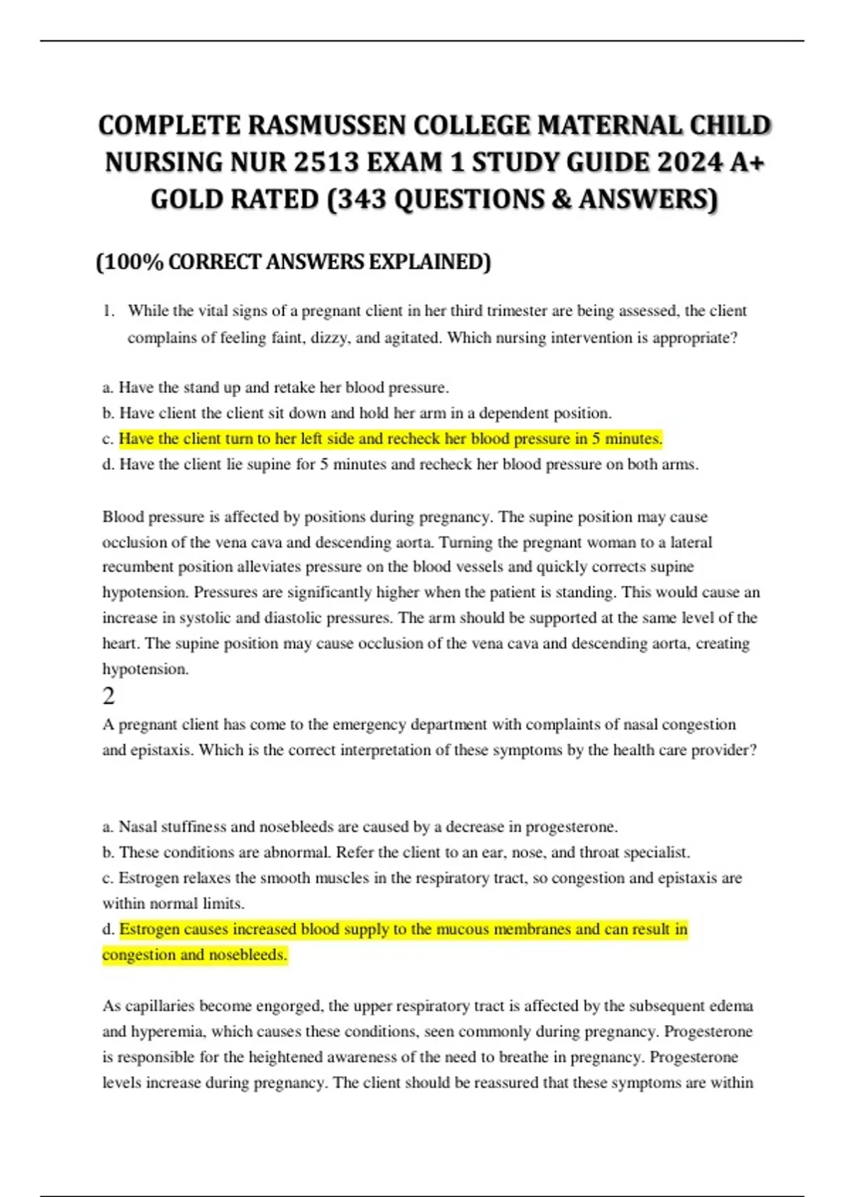 NURSING NUR 2513 EXAM 1 STUDY GUIDE 2024 A+