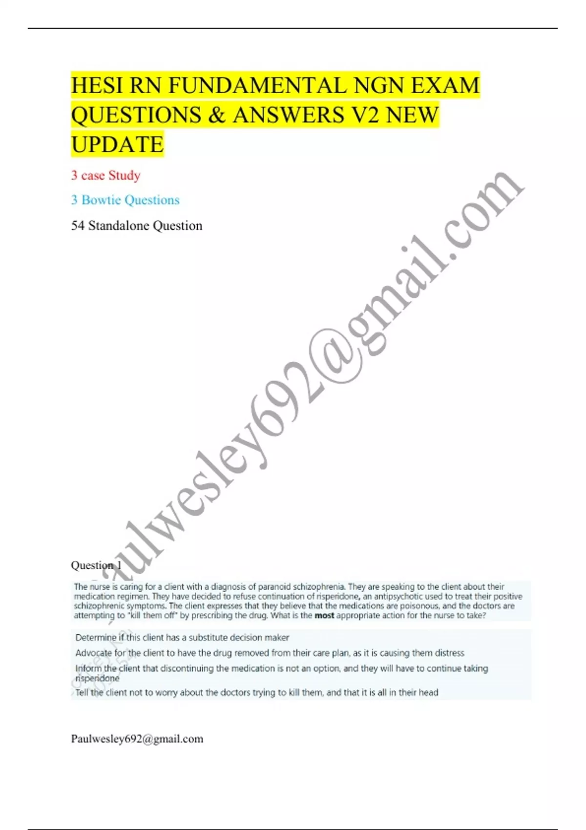 HESI RN FUNDAMENTAL NGN EXAM QUESTIONS & ANSWERS V2 NEW UPDATE 3 case Study 3 Bowtie Questions 54 Standalone Question