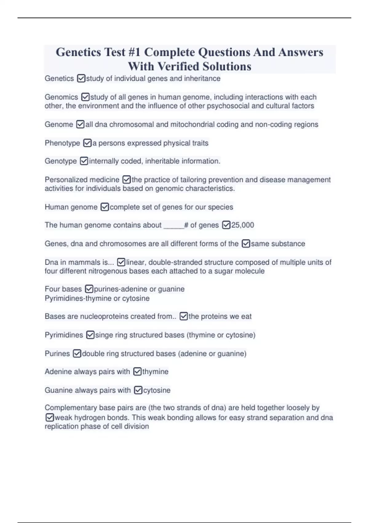 Genetics Test #1 Complete Questions And Answers With Verified Solutions Genetics Test #1 Complete Questions And Answers With Verified Solutions