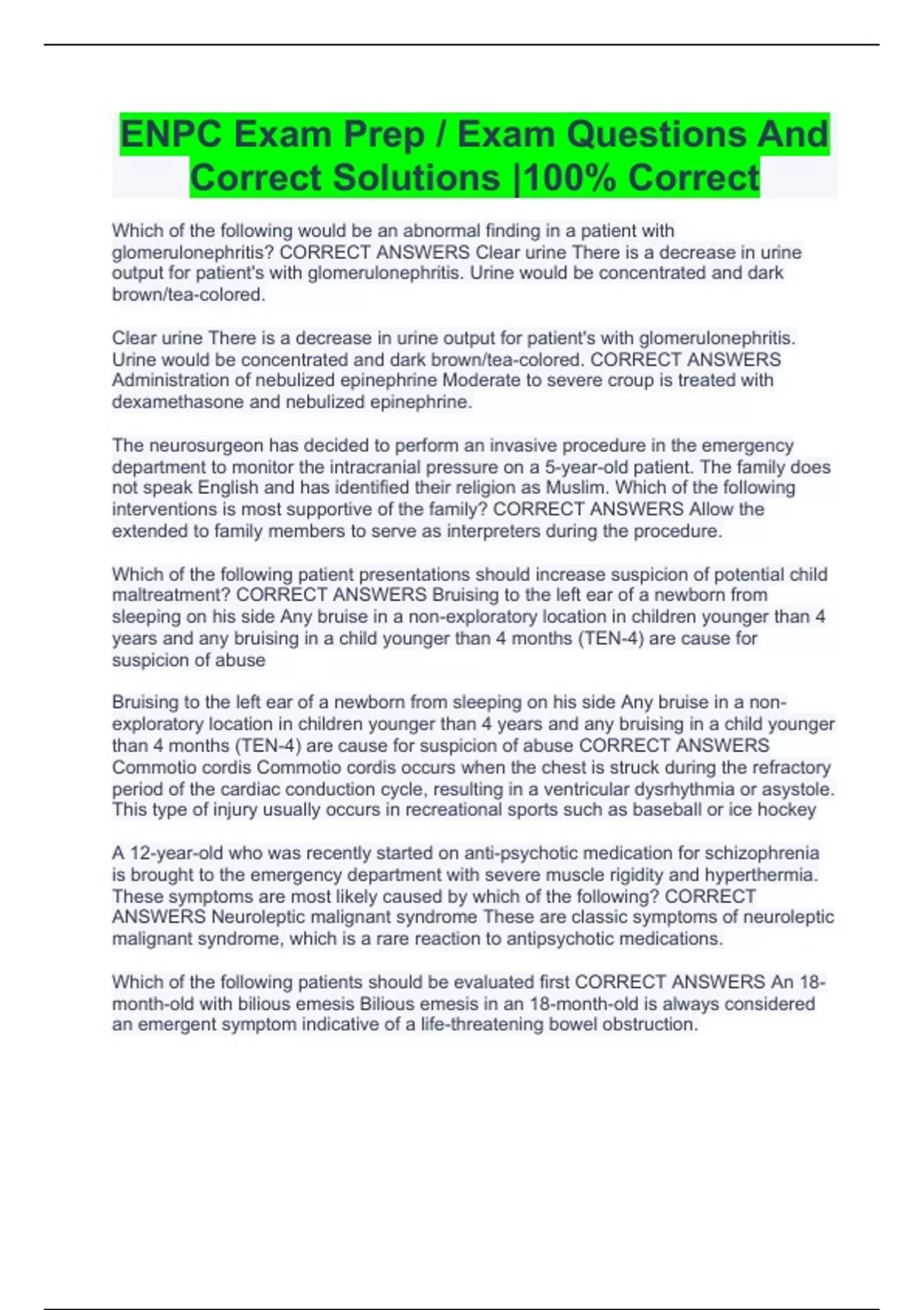 Correct Solutions |100% Correct