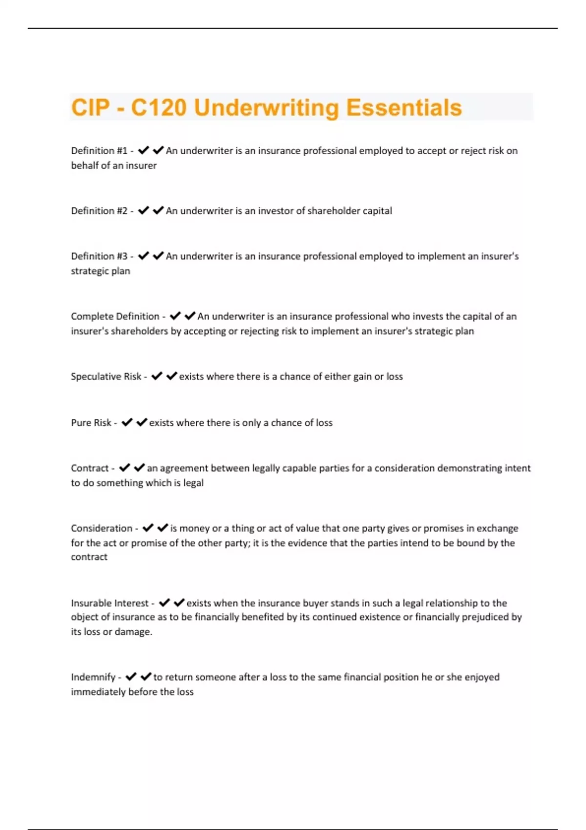 CIP - C120 Underwriting Essentials Questions With Complete Answers.