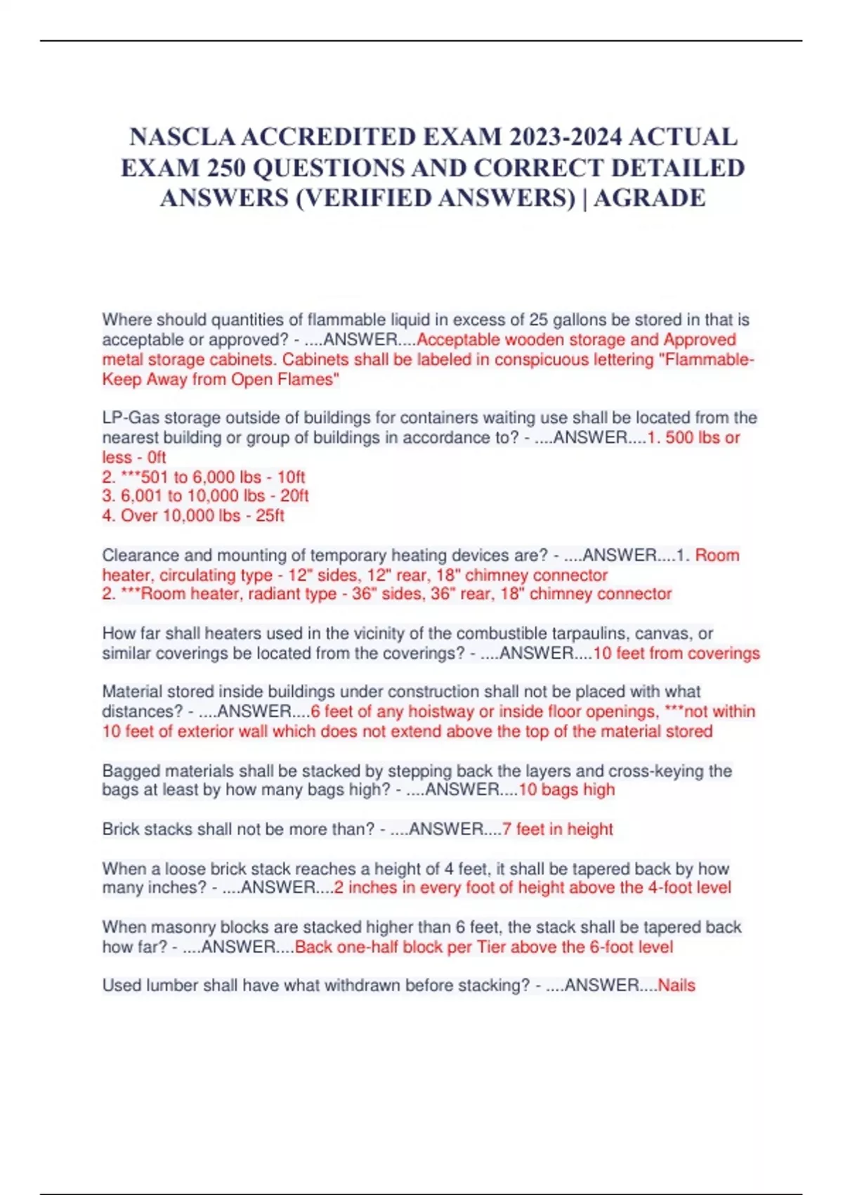 NASCLA ACCREDITED EXAM ACTUAL EXAM 250 QUESTIONS AND CORRECT DETAILED ANSWERS (VERIFIED ANSWERS) | AGRADE