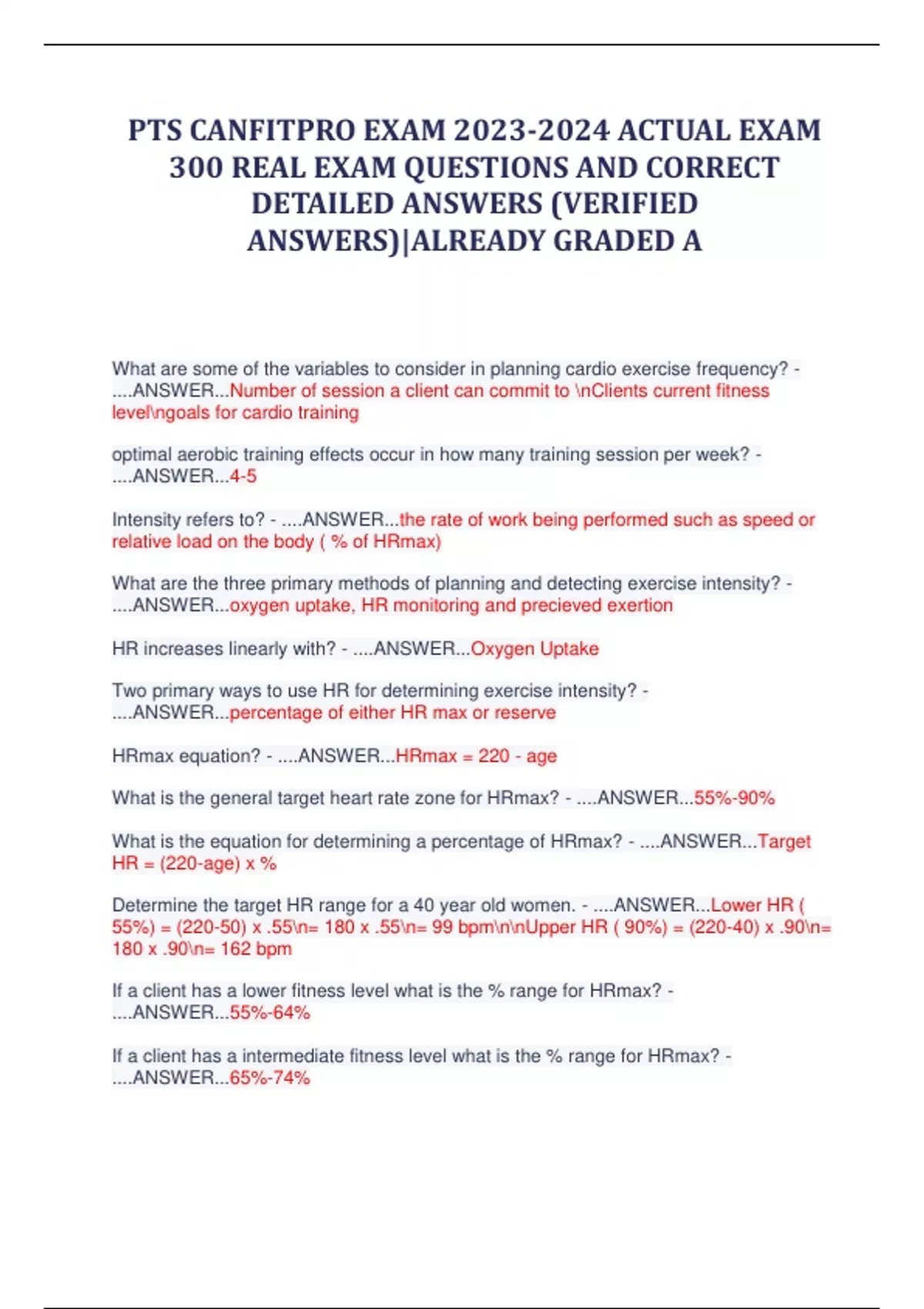 PTS CANFITPRO EXAM ACTUAL EXAM 300 REAL EXAM QUESTIONS AND CORRECT DETAILED ANSWERS (VERIFIED ANSWERS)|ALREADY GRADED A