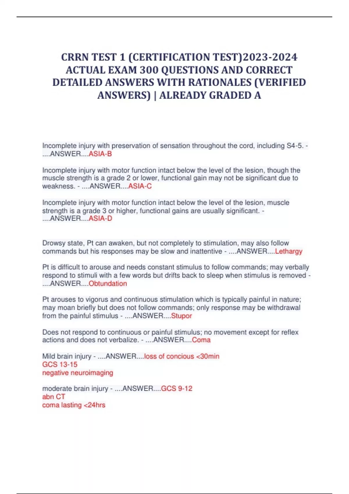 CRRN TEST 1 (CERTIFICATION TEST) ACTUAL EXAM 300 QUESTIONS AND CORRECT DETAILED ANSWERS WITH RATIONALES (VERIFIED ANSWERS) | ALREADY GRADED A