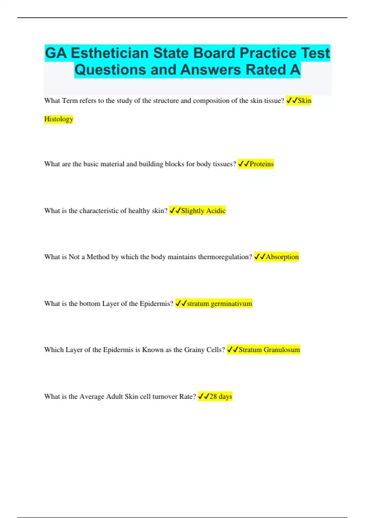 GA Esthetician State Board Practice Test Questions and Answers Rated A+