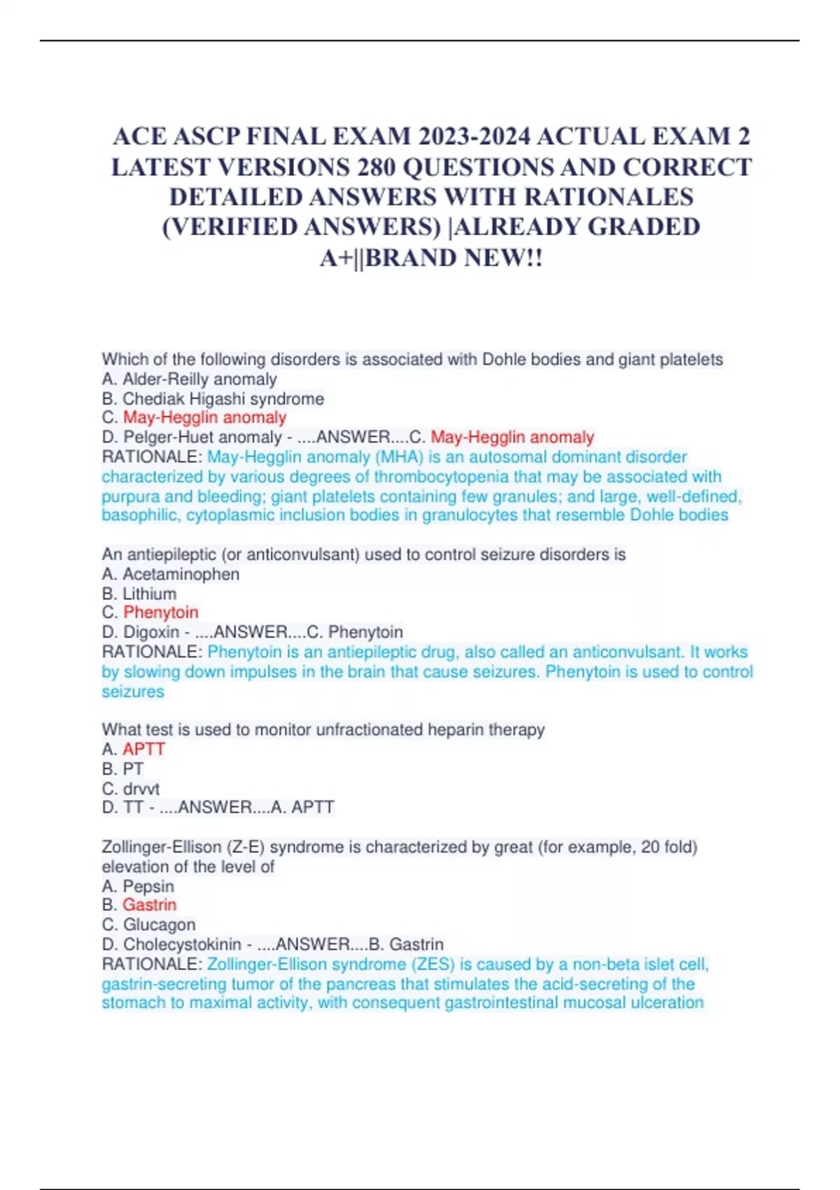 ACE ASCP FINAL EXAM ACTUAL EXAM 2 LATEST VERSIONS 280 QUESTIONS AND CORRECT DETAILED ANSWERS WITH RATIONALES (VERIFIED ANSWERS) |ALREADY GRADED A+||BRAND NEW!!