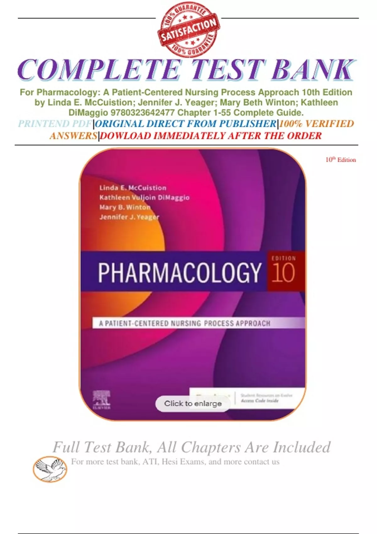 COMPLETE TEST BANK For Pharmacology: A Patient-Centered Nursing Process Approach 10th Edition by Linda E. McCuistion; Jennifer J. Yeager; Mary Beth Winton; Kathleen DiMaggio 9780323642477 Chapter 1-55 Complete Guide.