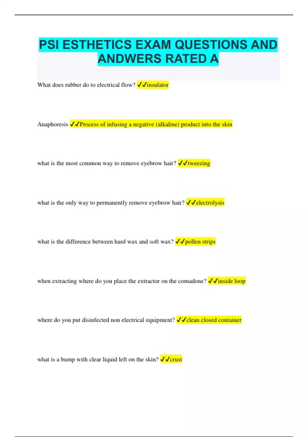 PSI ESTHETICS EXAM QUESTIONS AND ANDWERS RATED A+