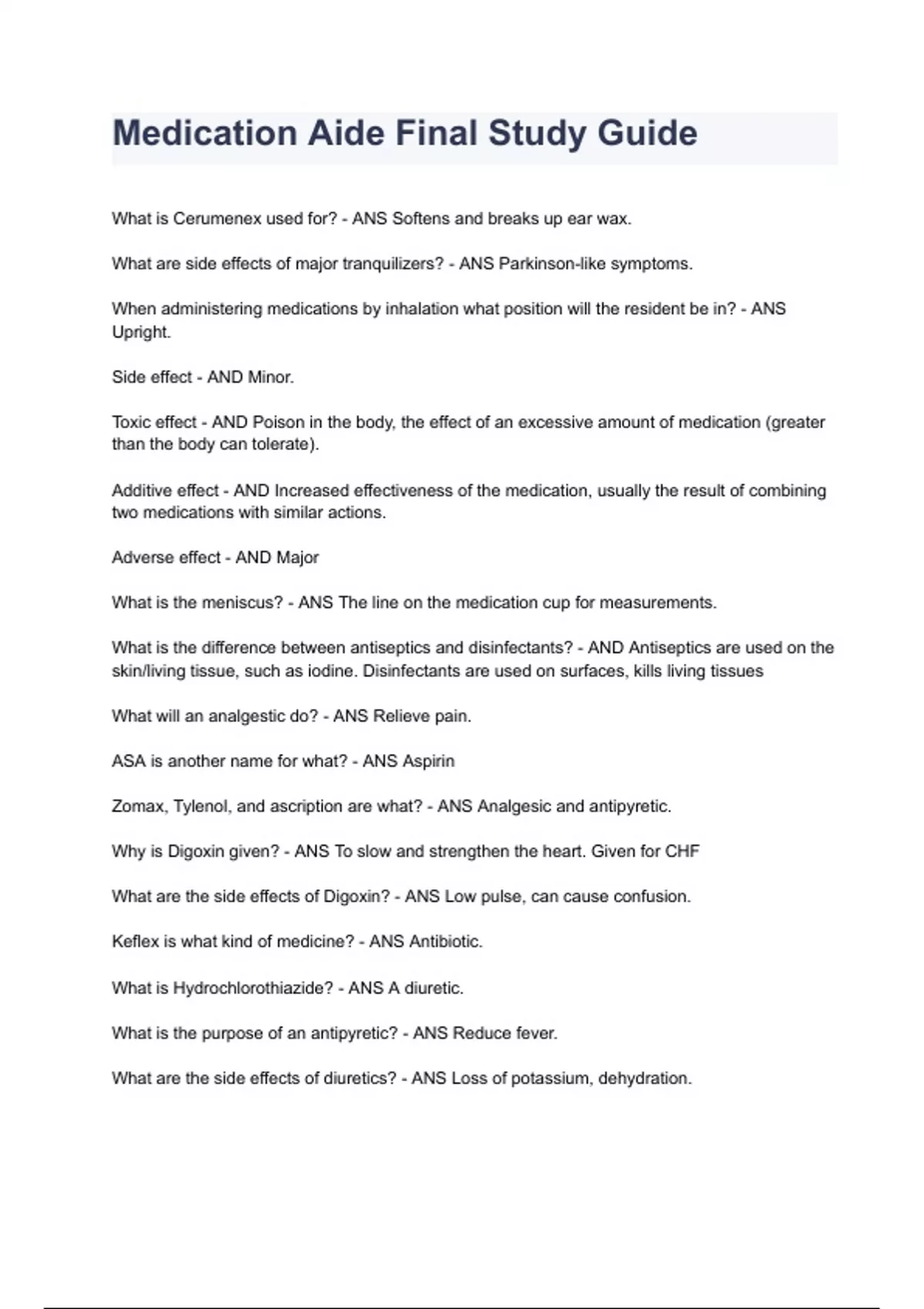 Medication Aide Final Study Guide Test 2023/2024 Question With Complete Answers Guaranteed A+.