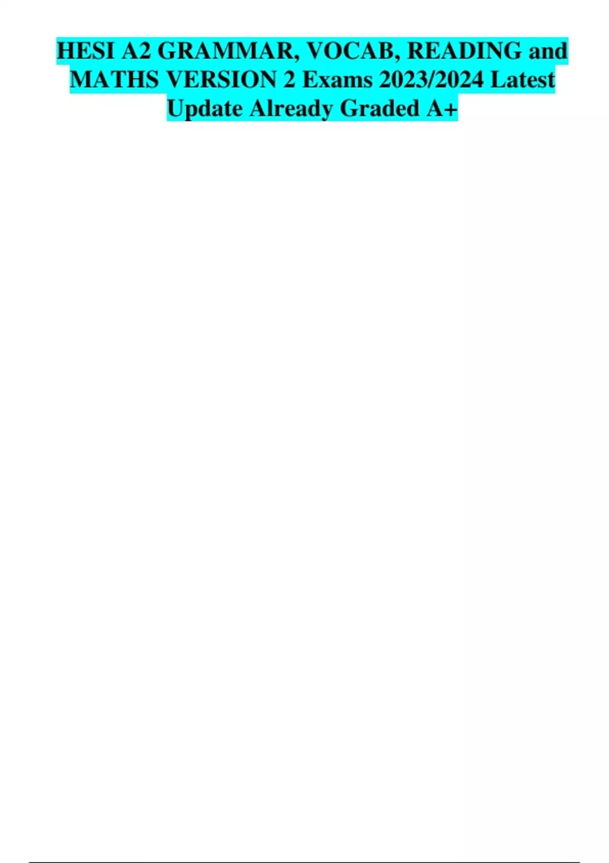 HESI A2 GRAMMAR, VOCAB, READING and MATHS VERSION 2 Exams 2023/2024 Latest Update Already Graded A+