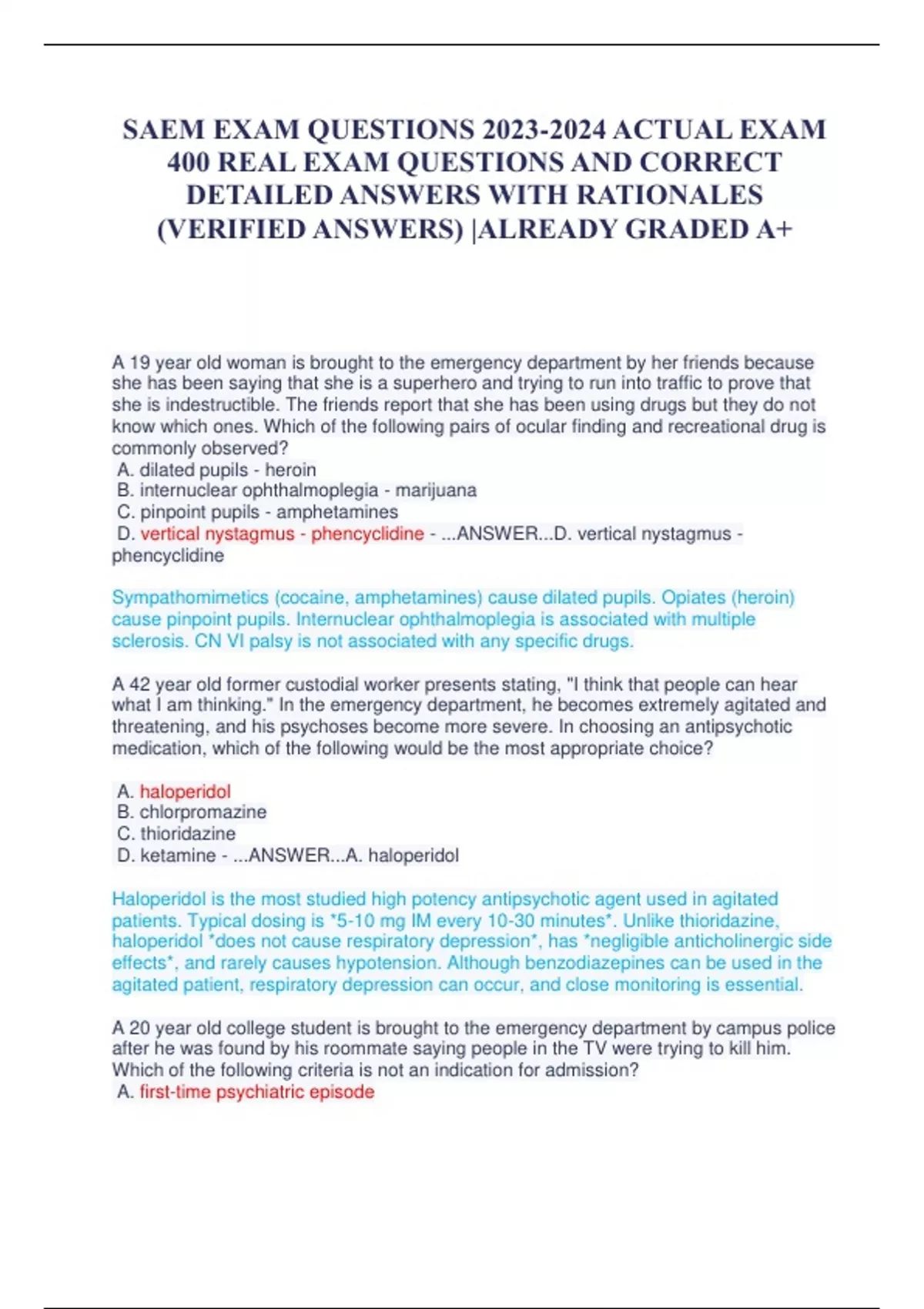 SAEM EXAM QUESTIONS ACTUAL EXAM 400 REAL EXAM QUESTIONS AND CORRECT DETAILED ANSWERS WITH RATIONALES (VERIFIED ANSWERS) |ALREADY GRADED A+