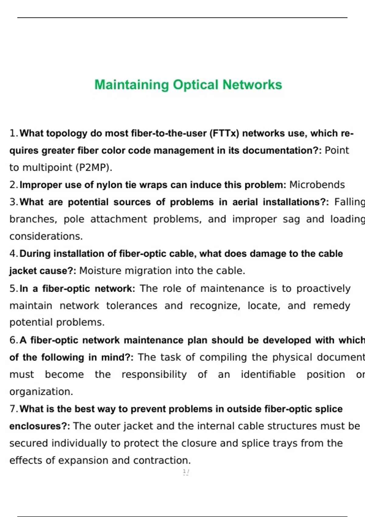 Maintaining Optical Networks Exam Spring 2023 with complete solution