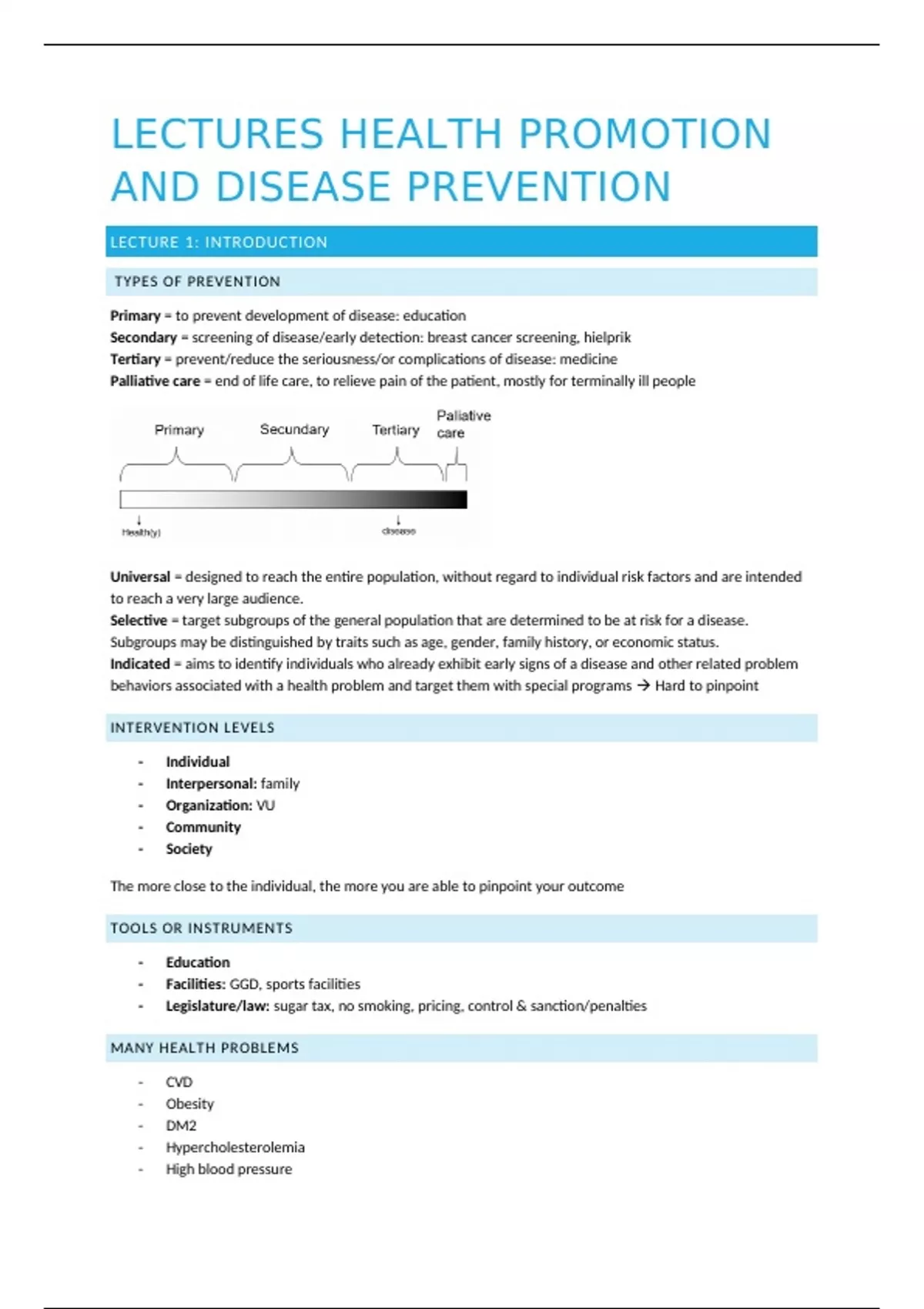 College aantekeningen Health promotion and disease prevention (AM_470811)