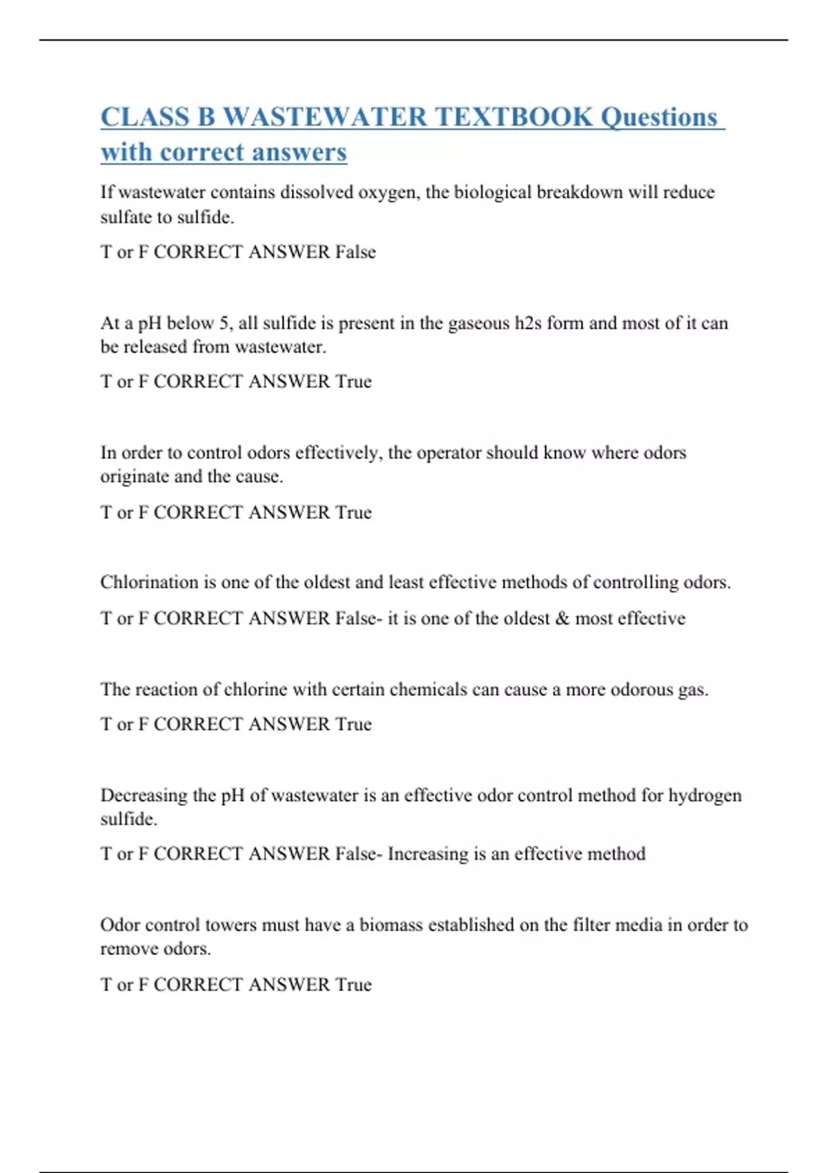 CLASS B WASTEWATER TEXTBOOK Questions with correct answers