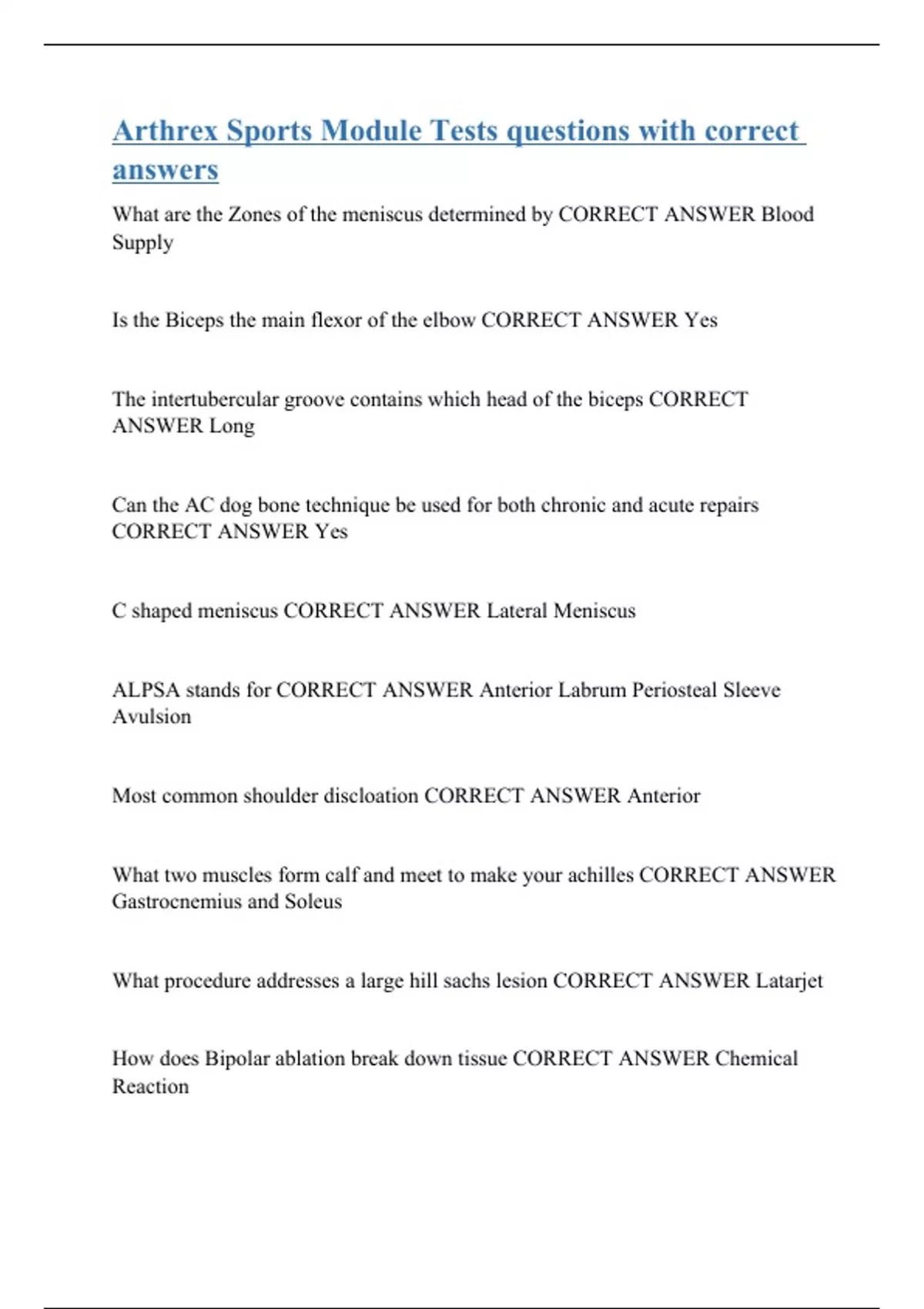 Arthrex Sports Module Tests questions with correct answers