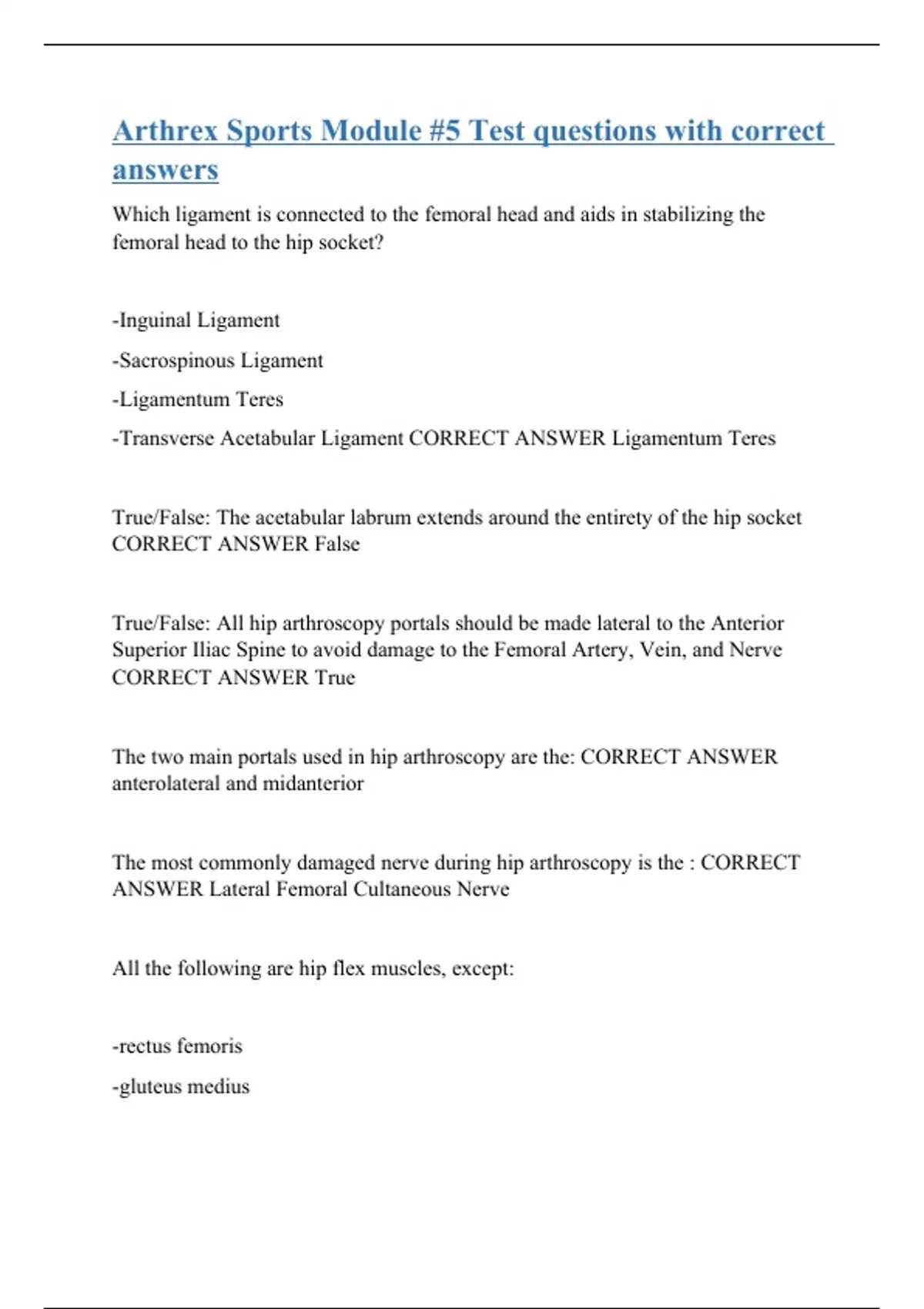 Arthrex Sports Module #5 Test questions with correct answers