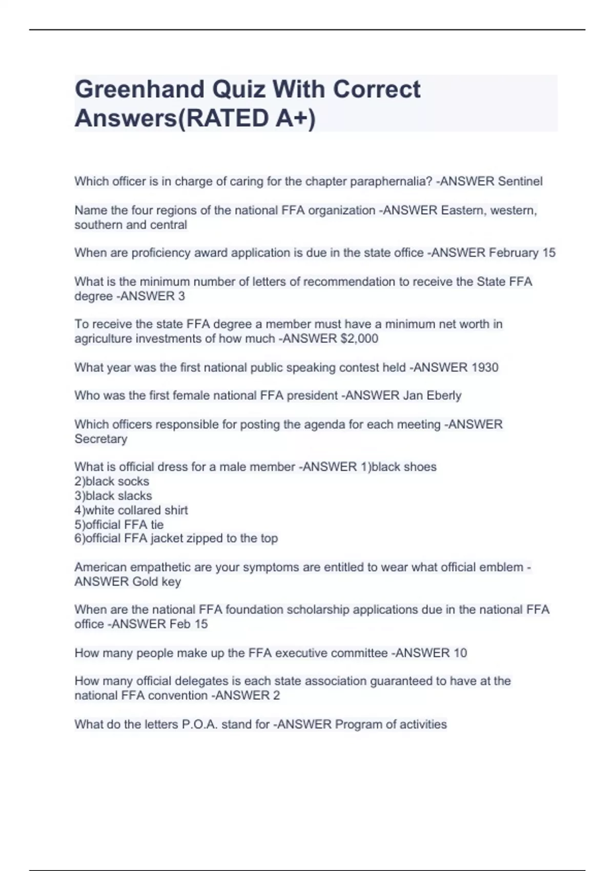 Greenhand Quiz With Correct Answers(RATED A+)