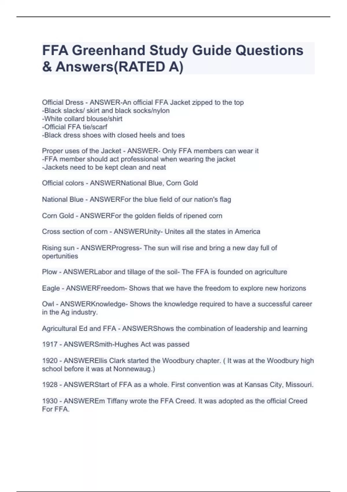 FFA Greenhand Study Guide Questions & Answers(RATED A)