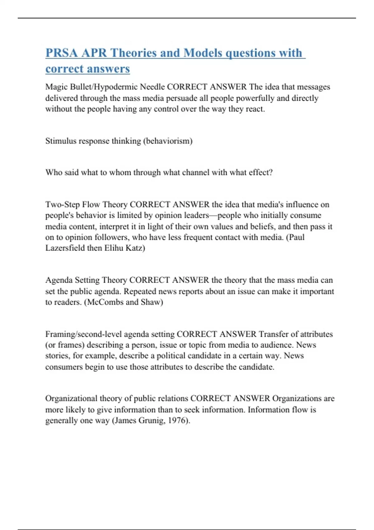PRSA APR Theories and Models questions with correct answers