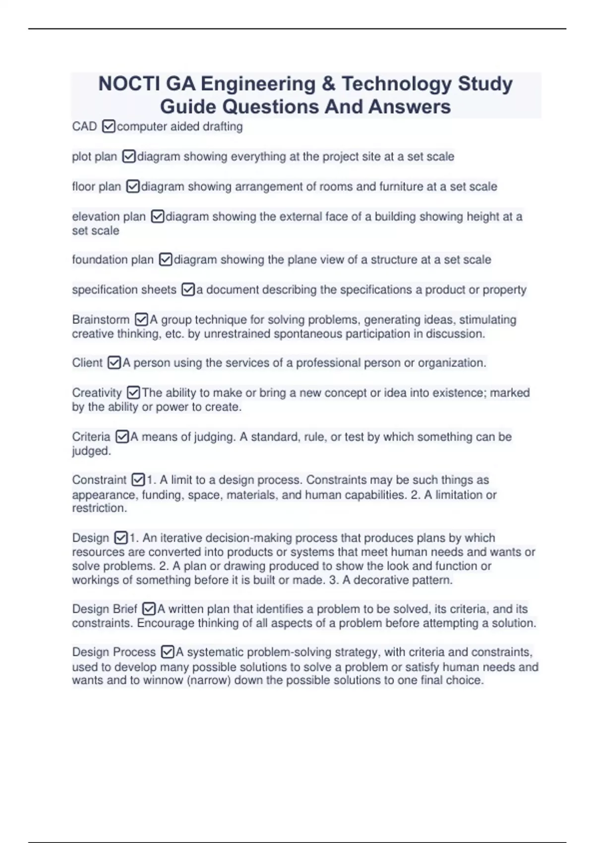 NOCTI GA Engineering & Technology Study Guide Questions And Answers NOCTI GA Engineering & Technology Study Guide Questions And Answers