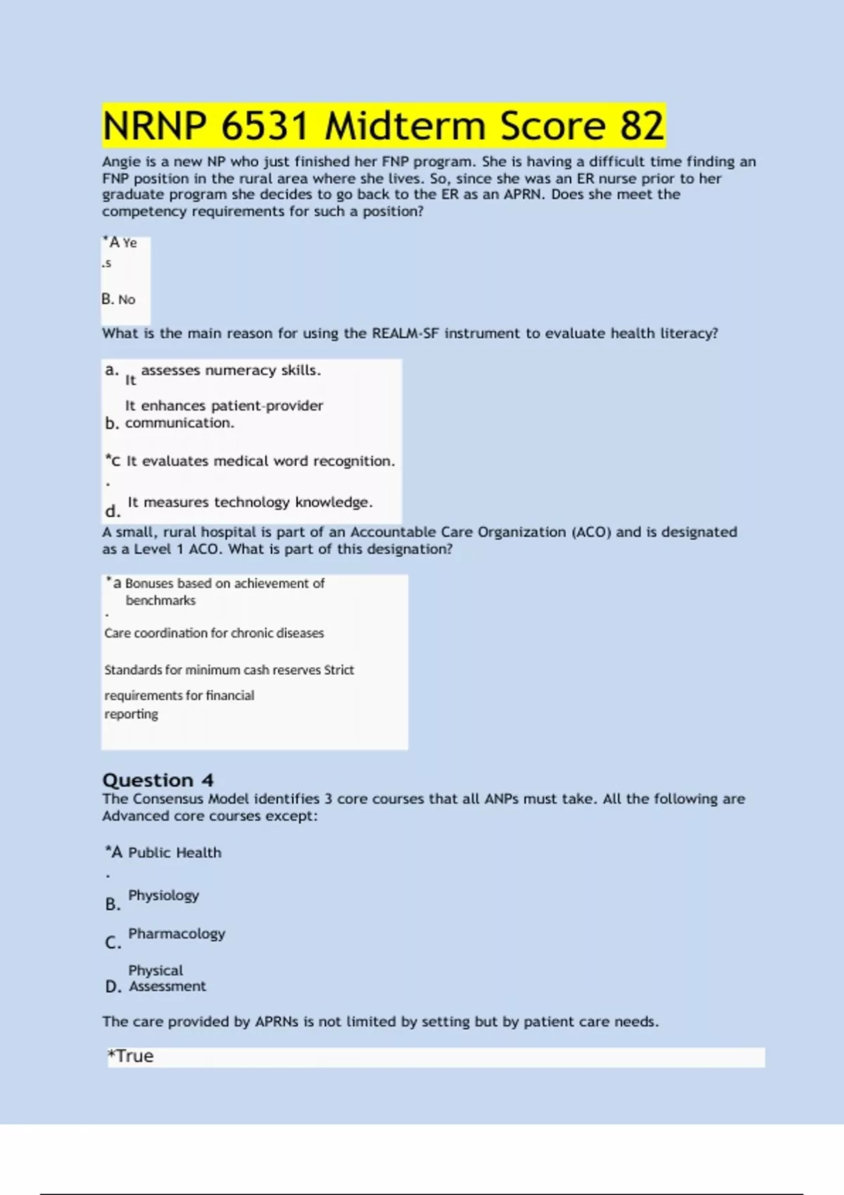 NRNP 6531 Midterm Exam Score 82% Questions and Answers (2024/2025) (Verified Answers)