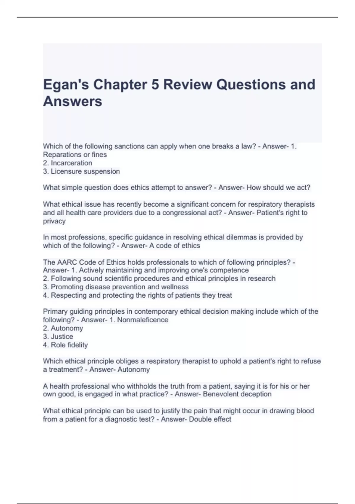 Egan's Chapter 5 Review Questions and Answers Graded A