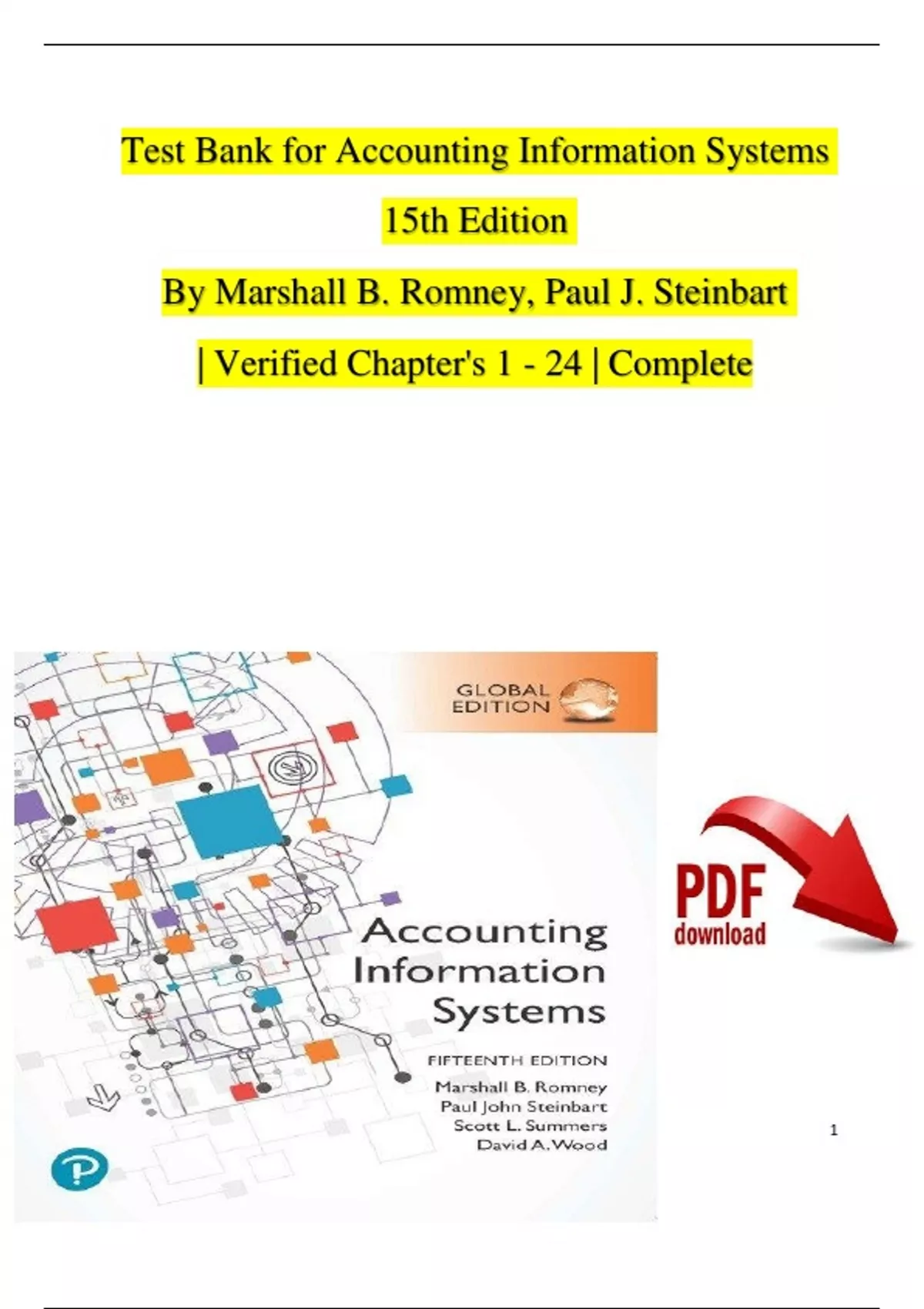 TEST BANK For Accounting Information Systems, 15th Global Edition By Marshall B. Romney, Paul J. Steinbart, All Chapters 1 - 24, Complete Newest Version