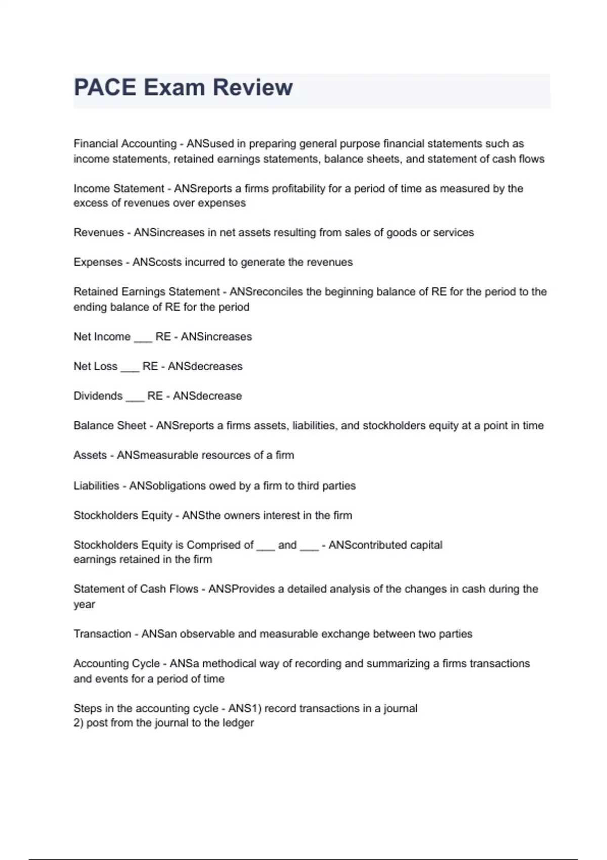 PACE Exam Review 2023/2024 already graded A+