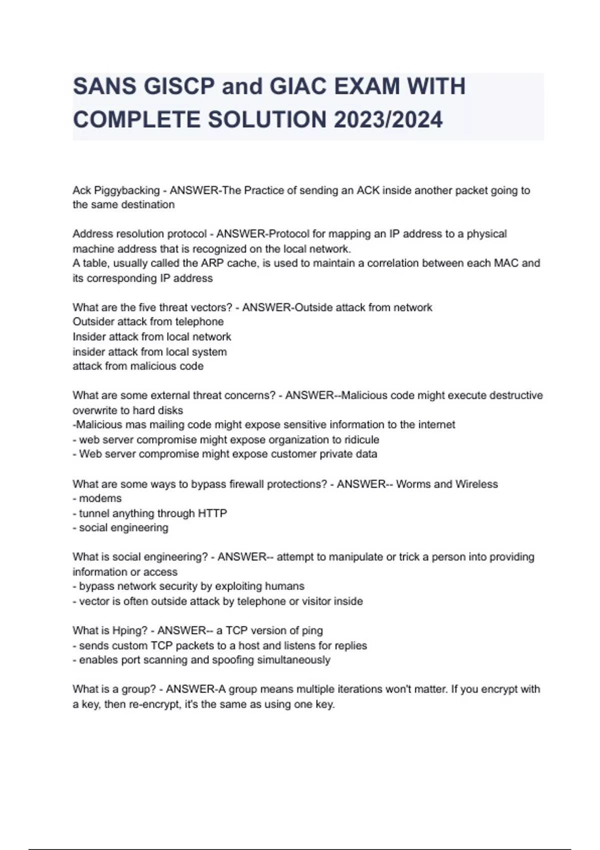 SANS GISCP and GIAC EXAM WITH COMPLETE SOLUTION 2023/2024