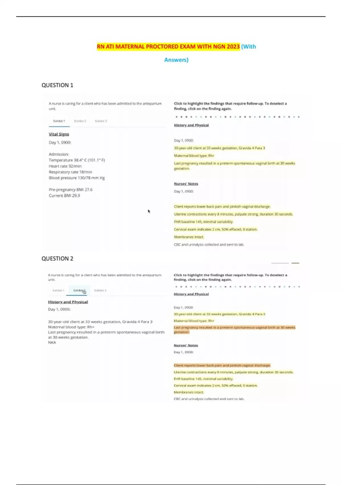 RN ATI MATERNAL PROCTORED EXAM WITH NGN 2023