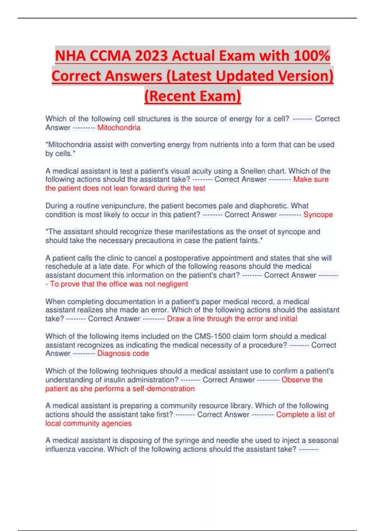 NHA CCMA 2023 Actual Exam with 100% Correct Answers (Latest Updated Version) (Recent Exam)