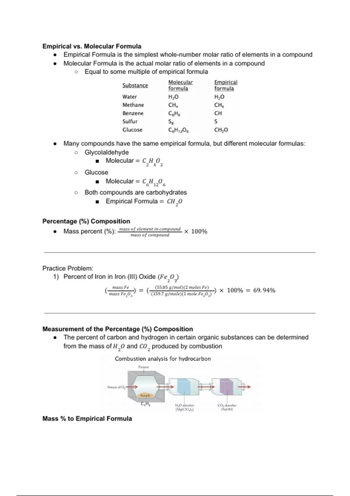 Lecture #6 - identifying the difference between empirical and molecular formulas, learning to calculate percentage composition, using mass percentage to find the empirical formula,